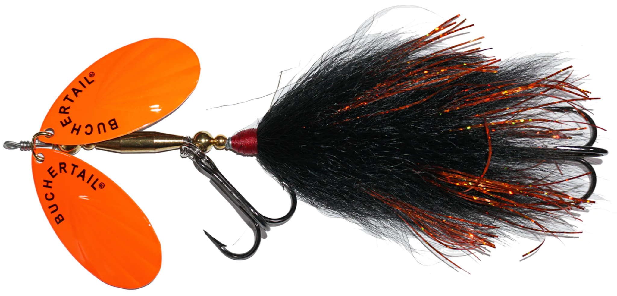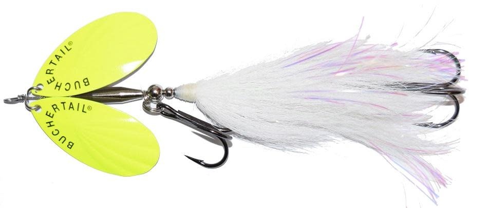 The Tin-buck 2 is a large frame bucktail that has 2 fluted blades, 2 hooks and 2 skirts. The tail section features a mix of bucktail and flashabou. Turn your local hawg loose with this one!