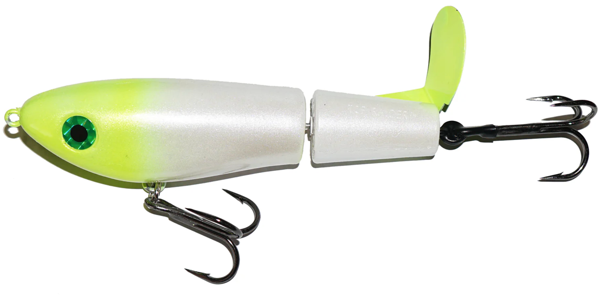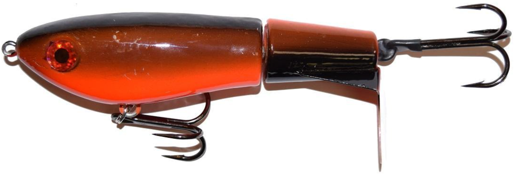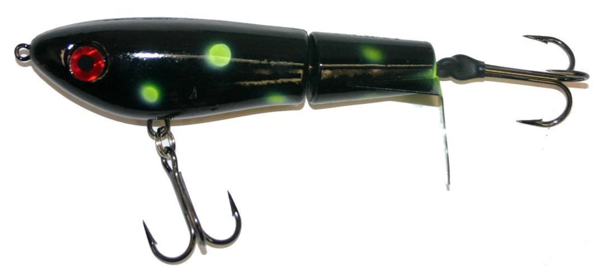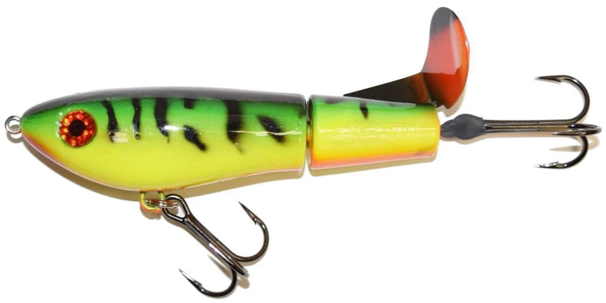 This tail rotating lure has become among the top producing lures in the musky world. It’s balanced to ride in an upright position at any speed and the integrated tail is pre-tuned to produce an attractive plop-plop sound that muskies love to devour. Shrink tubed tail hook resists fouling.8" 2.4oz
