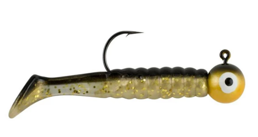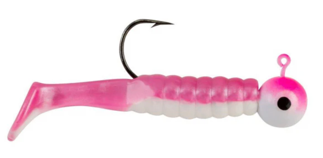 Johnson Swimming Paddletails are great for fishing most forms of freshwater predatory fish. This tail on these lures allow it to produce a great swimming action, even at slower trolling speeds. These baits come pre-rigged with round jig heads and soft bodies.