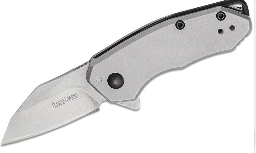 Kershaw 1408 Rate Assisted Flipper Knife 1.85" Stonewashed Wharncliffe Blade, Bead Blasted Stainless Steel Handles, Reversible Clip, Frame Lock