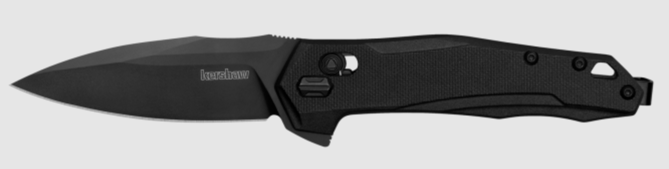 Kershaw 2041 Monitor MidSize Folding Spear Point Plain Black Oxide D2 Steel BladeBlack w/ Pocket Clip