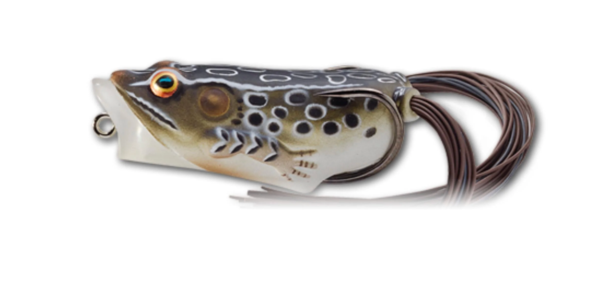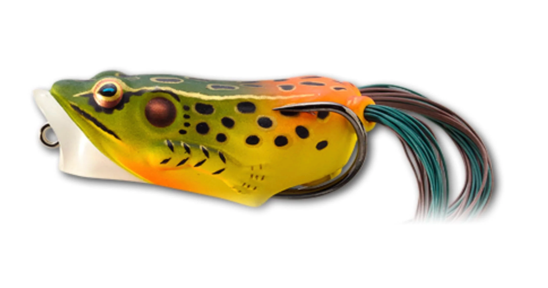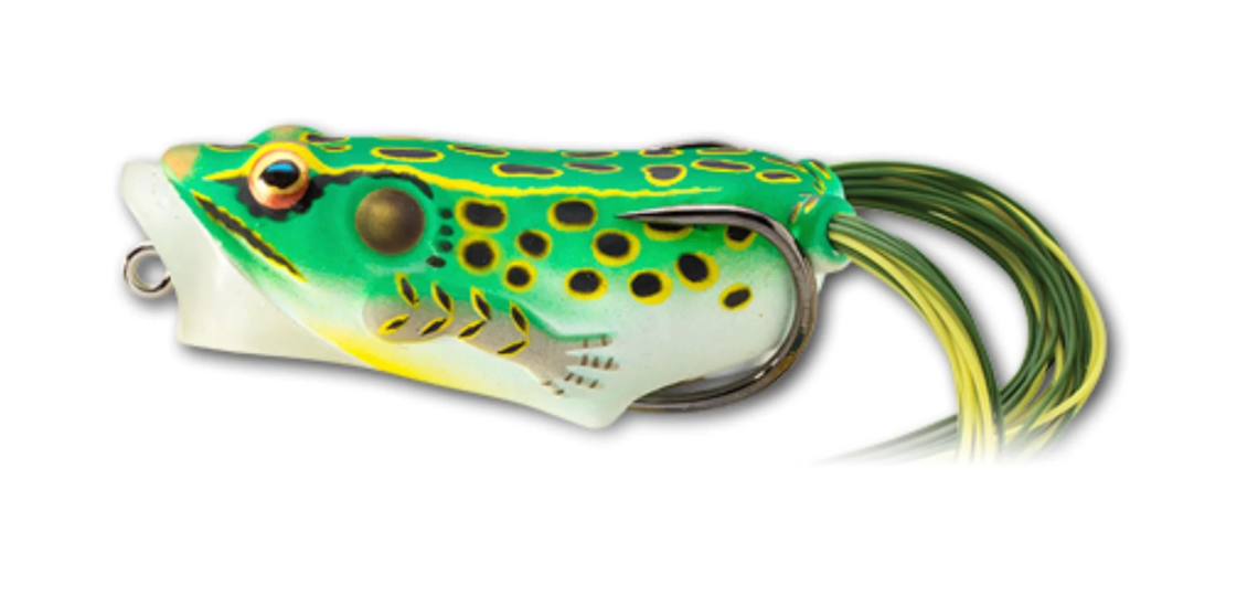 The Hollow Body Frog Popper has become a favourite to the seasoned top water angler. The narrow profile and cupped face make this bait easy to walk across the surface, creating a tantalizing sound and unique splash. The extra strong foraged hook and soft collapsible body ensures fast penetration and solid hook ups.