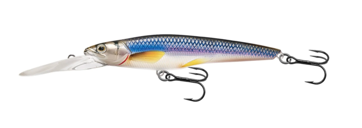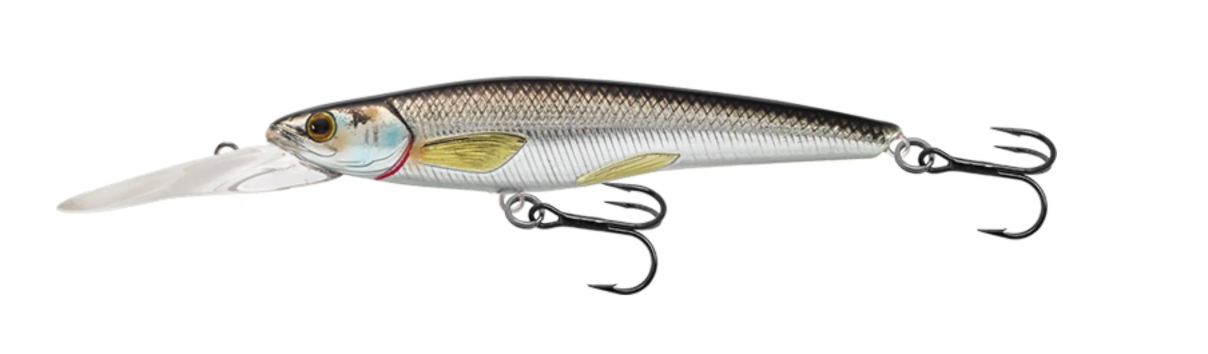 Rainbow Smelt are common forage to Northern game fish such as Walleye, Pike, Salmon, Trout, and Bass. Smelt are mostly found in the north and around the Great Lakes. The Jerkbait hosts a weight transfer, suspends and has a deep knocking sound. It is ideal for casting or trolling.