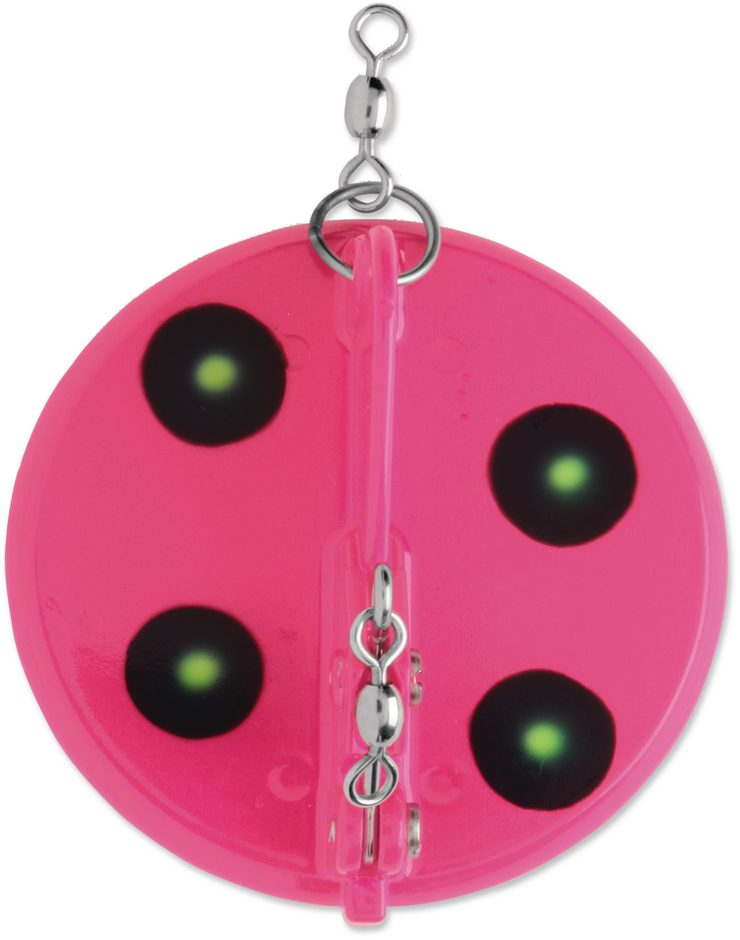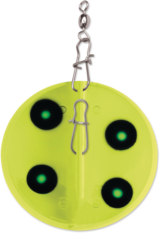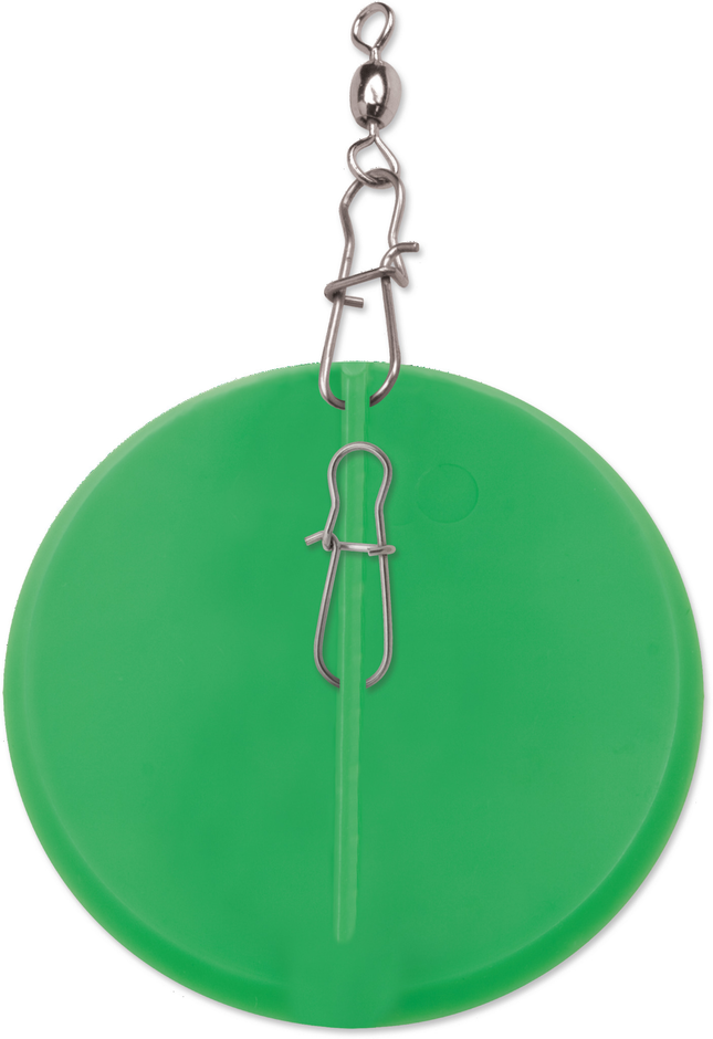 The special round shape and resulting multi-directional feature sets the Dipsy Diver® apart from all other divers and planers. A shift left or right, as indicated on the base plate, will cause the diver to track to port or starboard, allowing for large spreads of lures to be fished from a single boat. You'll cover more water when the Dipsy Divers are deployed. The adjustable trip mechanism can be set specifically for various lure sizes and the size of target fish. Four sizes of Dipsy Divers are available, with dive depths of up to 20, 35, 50 and 100 feet. See our Tech Report: Dipsy Diver, The Directional Diver and Tech Report #15: Trolling Spoons for Freshwater Salmon, Striped Bass, Trout.