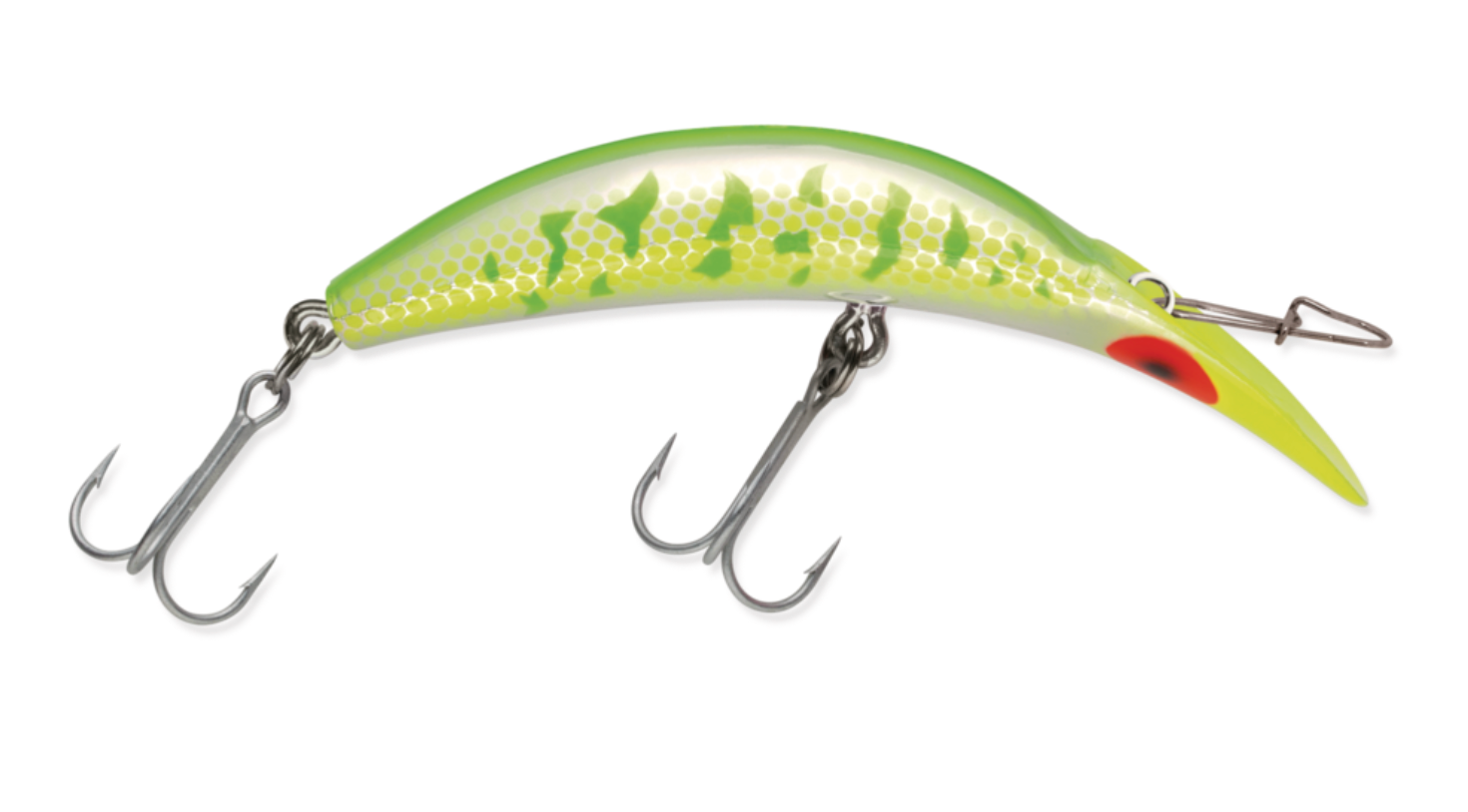 There are two types of crankbaits in the world, those with a tight baitfish shimmy, and the Kwikfish®. Kwikfish are full-throttle, wide-action, leave-no-doubt lures that challenge game fish small and large alike. Their aggressive action forces a response from fish, often generating the most savage strikes imaginable. Small sizes target trout, the middle range steelhead and silver salmon, and the largest king salmon and lunker lake trout. For maximum success, tune the screw eye on the face of the plug to achieve an even side-to-side action. Using small adjustments, turn the screw eye in the opposite direction that the lure is favoring, until it tracks straight.