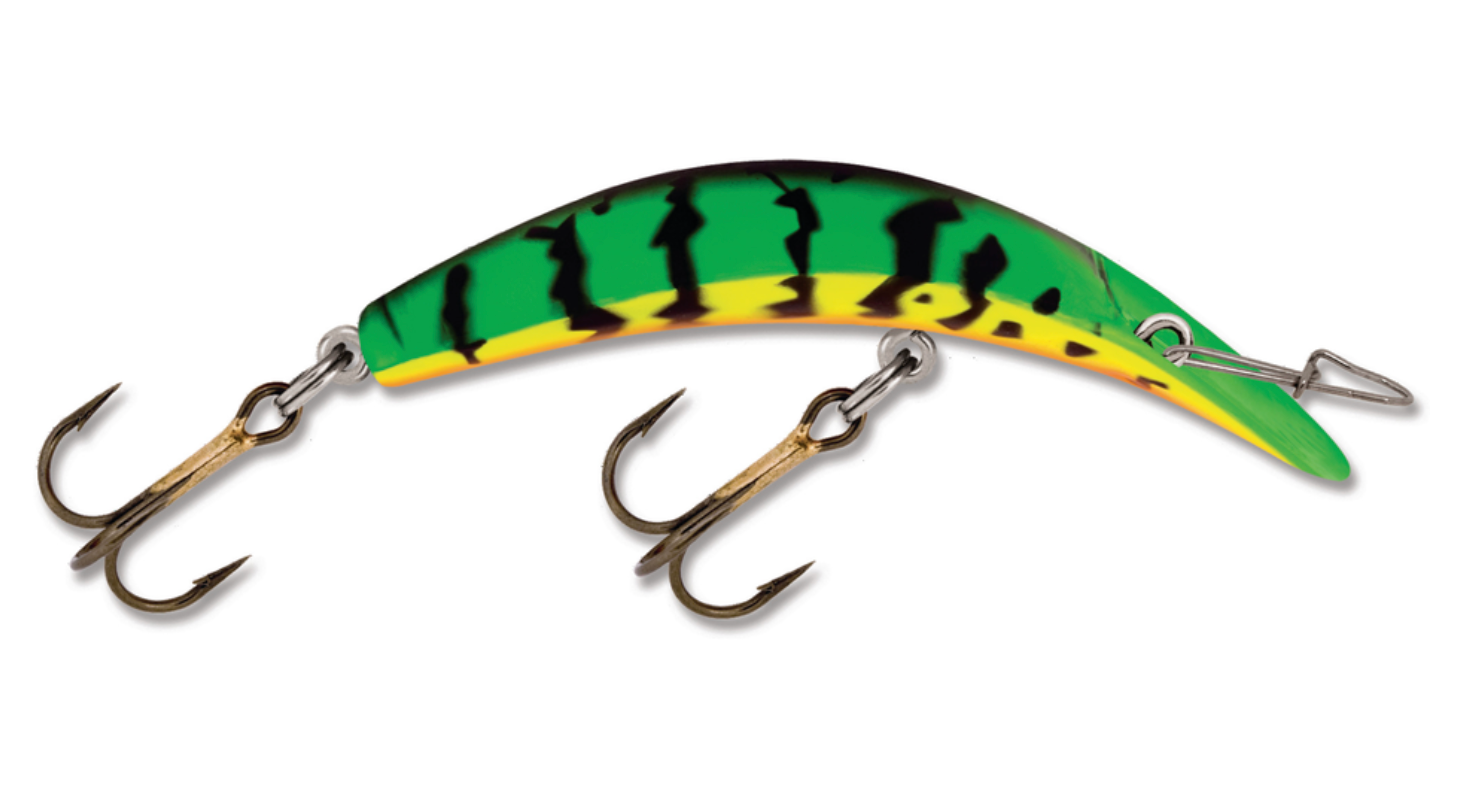 There are two types of crankbaits in the world, those with a tight baitfish shimmy, and the Kwikfish®. Kwikfish are full-throttle, wide-action, leave-no-doubt lures that challenge game fish small and large alike. Their aggressive action forces a response from fish, often generating the most savage strikes imaginable. Small sizes target trout, the middle range steelhead and silver salmon, and the largest king salmon and lunker lake trout. For maximum success, tune the screw eye on the face of the plug to achieve an even side-to-side action. Using small adjustments, turn the screw eye in the opposite direction that the lure is favoring, until it tracks straight.