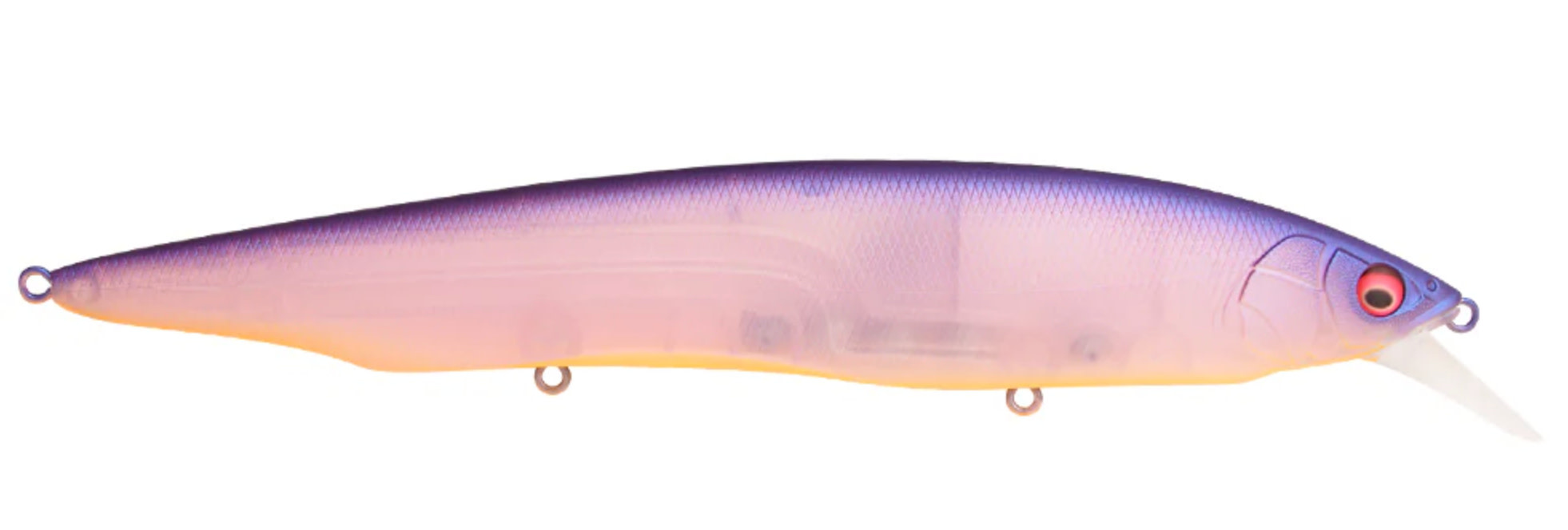Engineered with an aerodynamic form and custom-fitted with triple-oscillating tungsten balancers, the Megabass Kanata Jerkbait delivers long-distance casts with minimal effort. Offered in a number of highly detailed colors, the Megabass Kanata Jerkbait brings a new size and sensation to the jerkbait game.