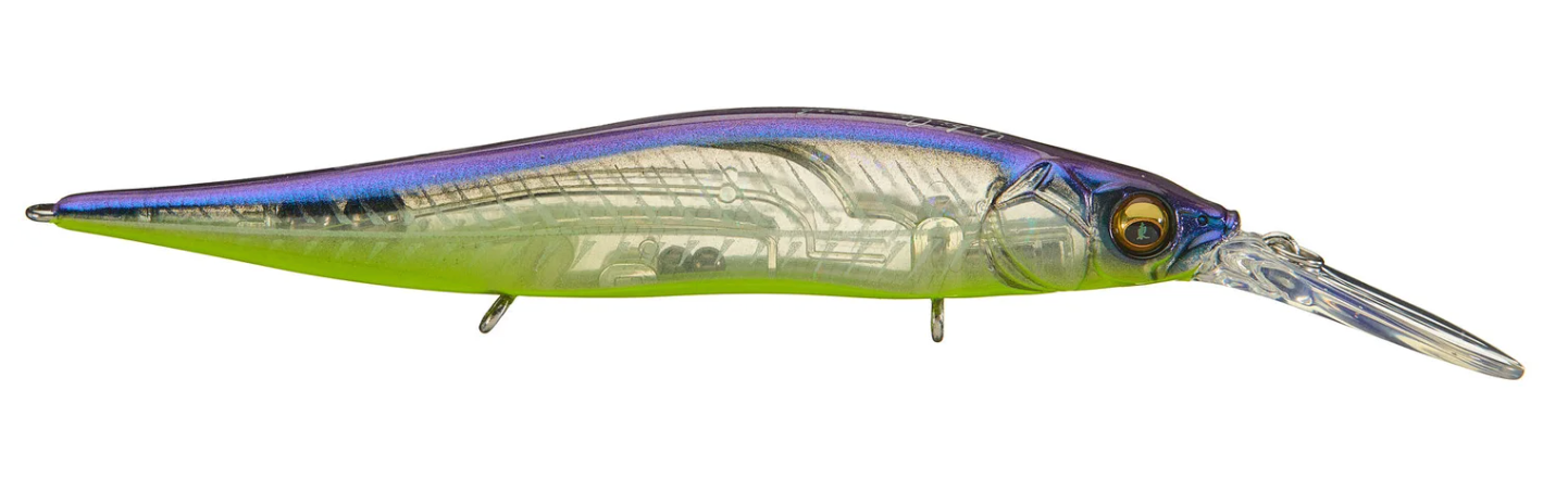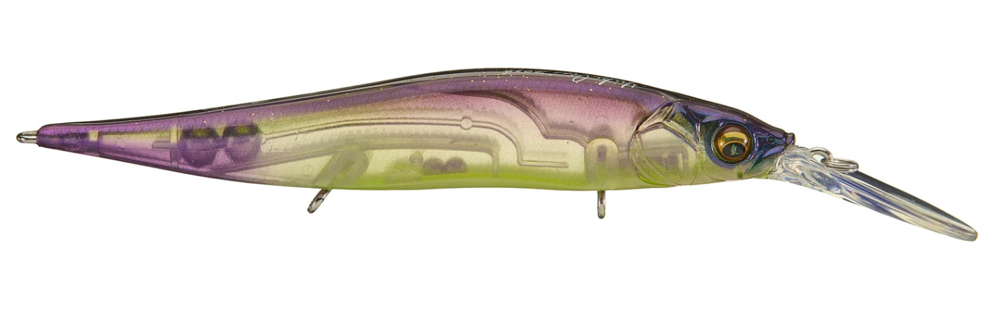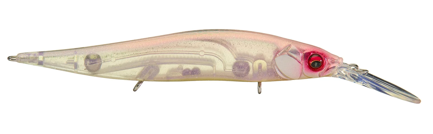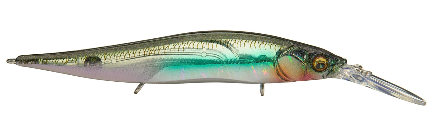 At target depth, this high-performance jerkbait displays remarkably wide and responsive darting action with a contoured body that throws off intense flash and a delicate shimmy appeal to provoke compulsive bites from deep cruisers. Exceeding expectations to help anglers bring hard-fought trophies within reach, the Megabass Ito Vision 110+2 Jr. Jerkbait ensures long-distance castability with an aerodynamic form and dual-tungsten weight transfer system.