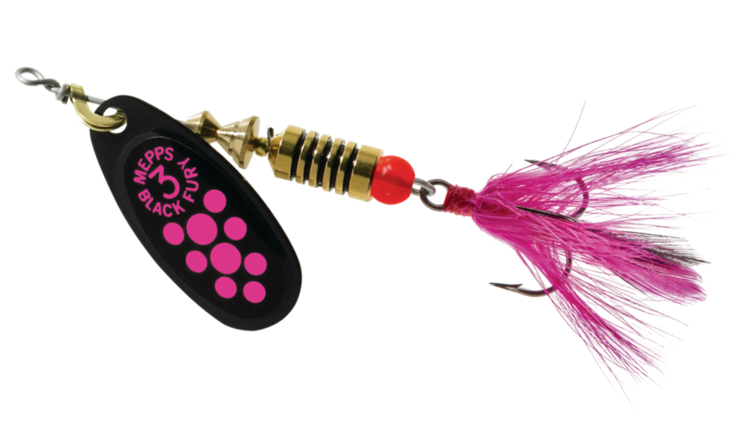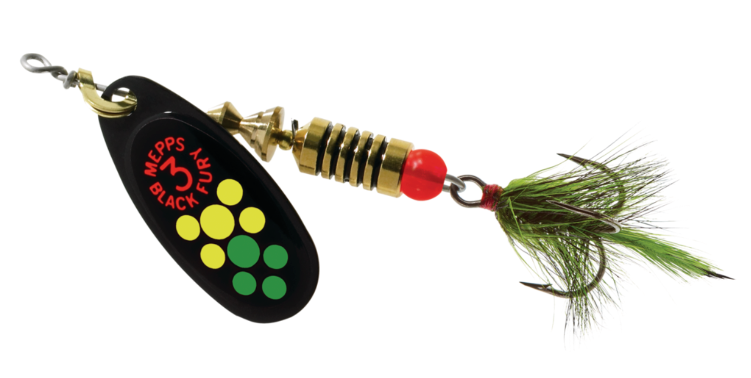 The special Black Fury® blade spins closer to the body than the classic Aglia® blade so it easily fishes shallow to mid-depths. This is an excellent low light (early morning, evening or overcast) spinner as well as a perfect choice for sunny days in less clear waters. The dressed version features bucktail tail. Available with dressed single siwash hooks. Add ‘DSS’ to product code Available in size # 0, 1, 2 and 3