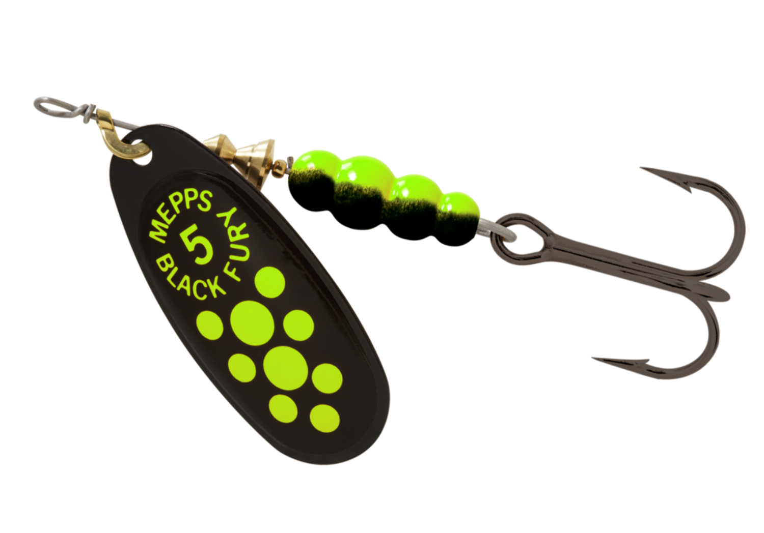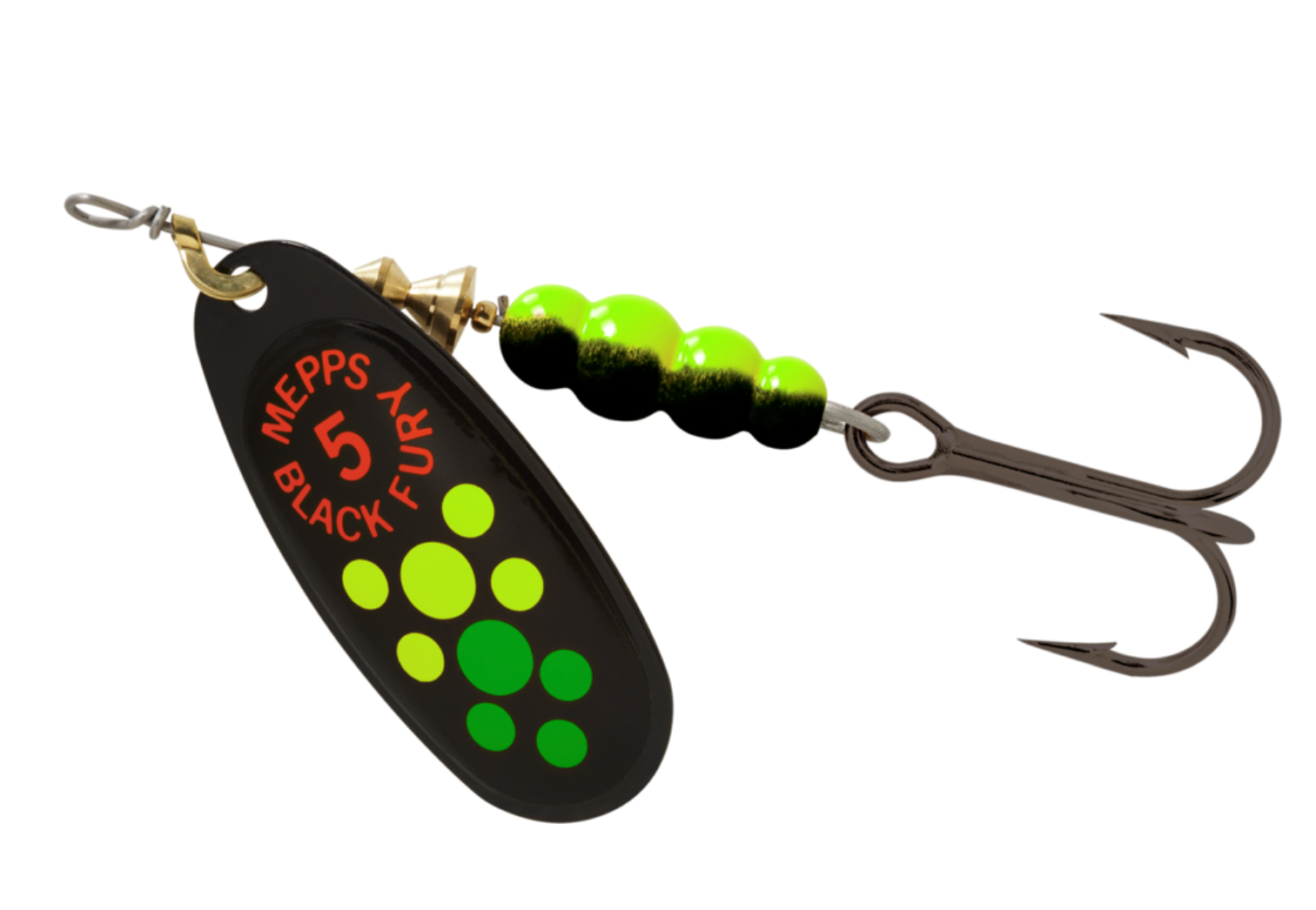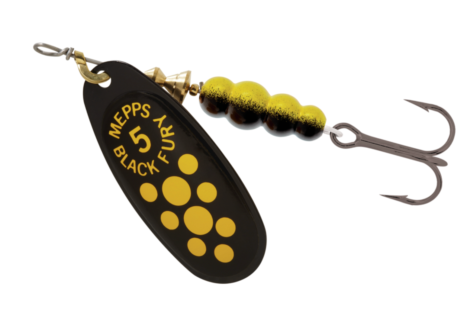 The special Black Fury® blade spins closer to the body than the classic Aglia® blade so it easily fishes shallow to mid-depths. This is an excellent low light (early morning, evening or overcast) spinner as well as a perfect choice for sunny days in less clear waters. Available with single siwash hooks. Add ‘SS’ to product code Available in size # 1, 2 and 3