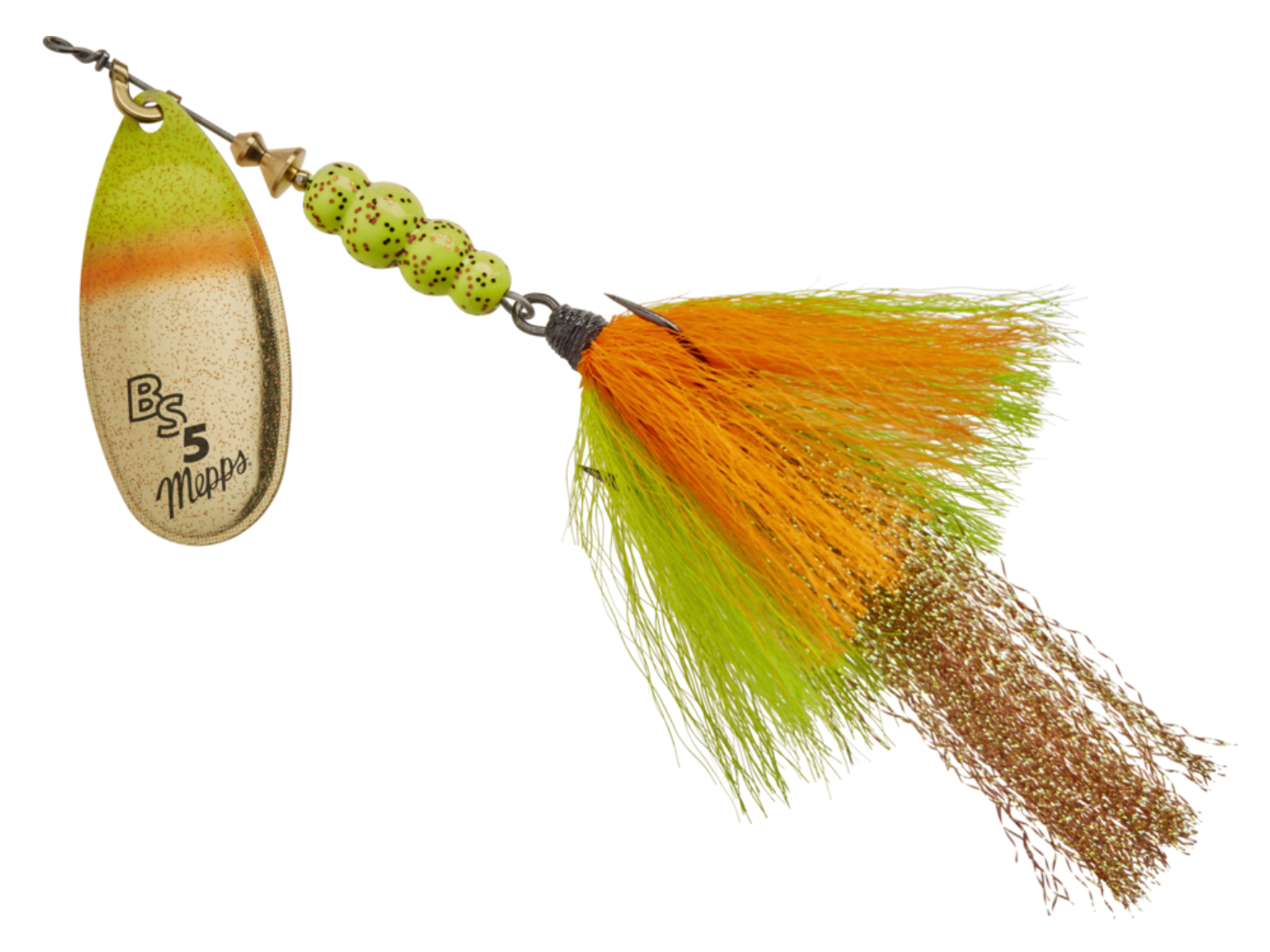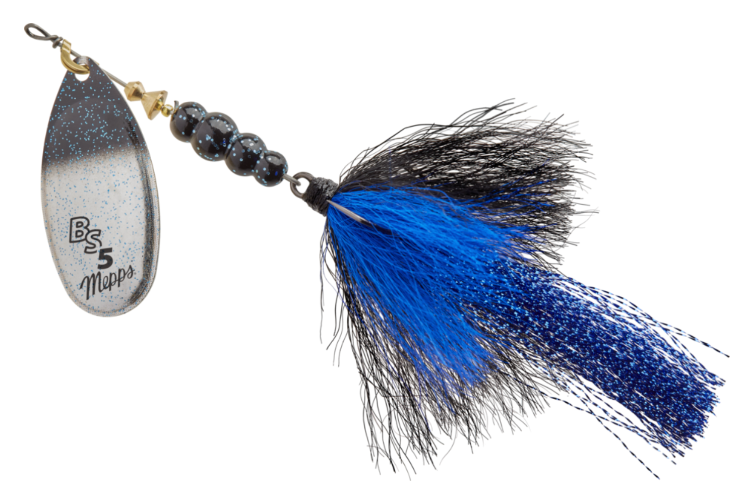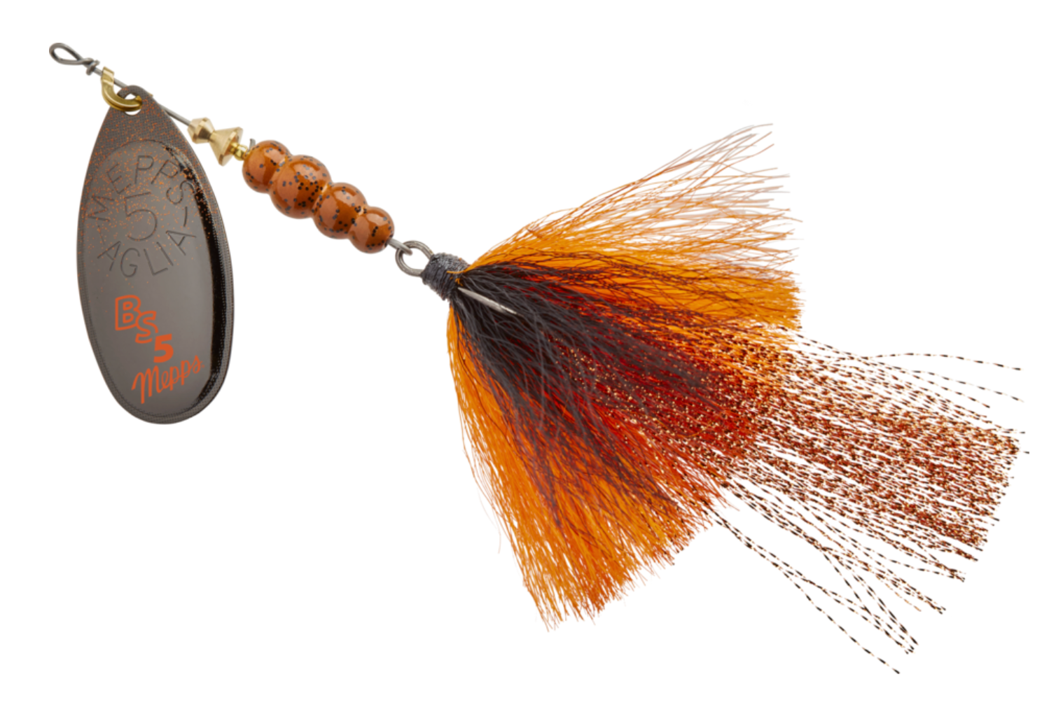 Designed with an emphasis on catching big smallmouth bass on big bodies of water. The hand painted blades & bodies with glitter which mimic various bait fish patterns that bass feed on, in addition, adds contrast to the blinding underwater flash of our silver, gold, copper & black nickel blades. The heart of any in-line spinner is the clevis. Our folded solid brass clevis is what allows the blade on every Mepps® lure to start spinning as soon as the lure hits the water. Perfect balance of premium hand-tied bucktail & flashabou. The flashabou is designed to be more pronounced in the middle, creating extra tail action & more flash when swimming through the water. The dressed treble hook on the Bronze Slammer is designed to offer an extra large profile that is over 20% larger than our standard Dressed Aglia® profile. The VMC® Barbarian® Treble Hook features a technical locking curve, offering a 25% improved hook up rate, which decreases the chance of losing out on a big fish