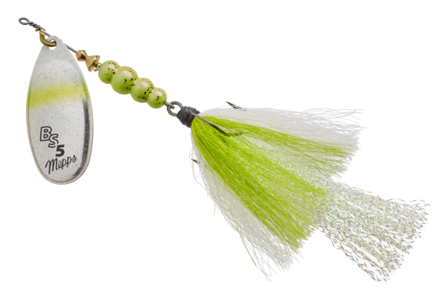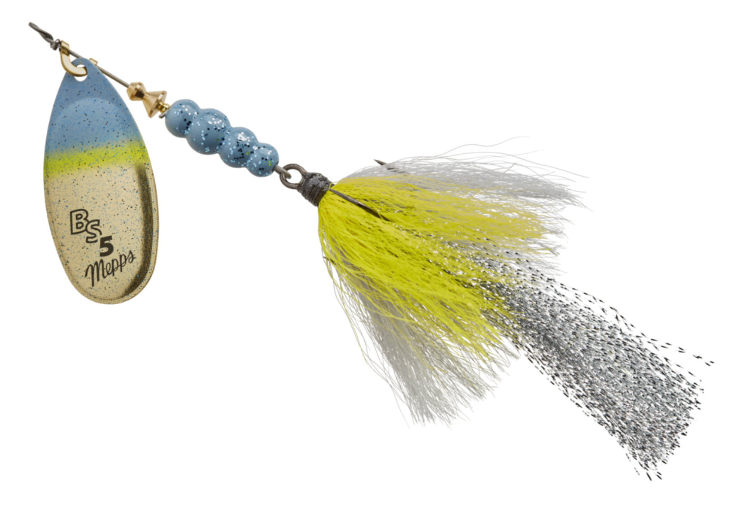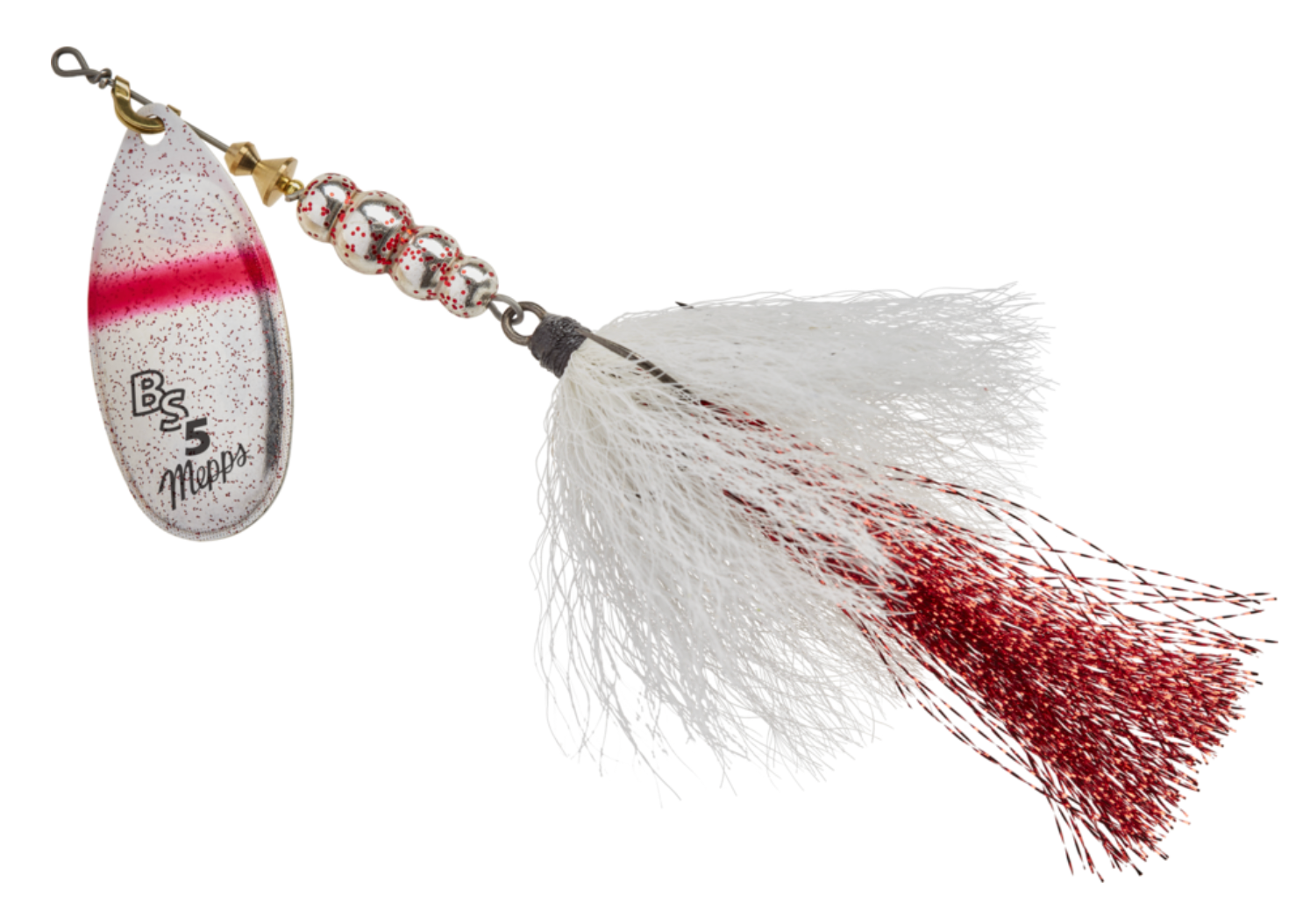 Designed with an emphasis on catching big smallmouth bass on big bodies of water. The hand painted blades & bodies with glitter which mimic various bait fish patterns that bass feed on, in addition, adds contrast to the blinding underwater flash of our silver, gold, copper & black nickel blades. The heart of any in-line spinner is the clevis. Our folded solid brass clevis is what allows the blade on every Mepps® lure to start spinning as soon as the lure hits the water. Perfect balance of premium hand-tied bucktail & flashabou. The flashabou is designed to be more pronounced in the middle, creating extra tail action & more flash when swimming through the water. The dressed treble hook on the Bronze Slammer is designed to offer an extra large profile that is over 20% larger than our standard Dressed Aglia® profile. The VMC® Barbarian® Treble Hook features a technical locking curve, offering a 25% improved hook up rate, which decreases the chance of losing out on a big fish