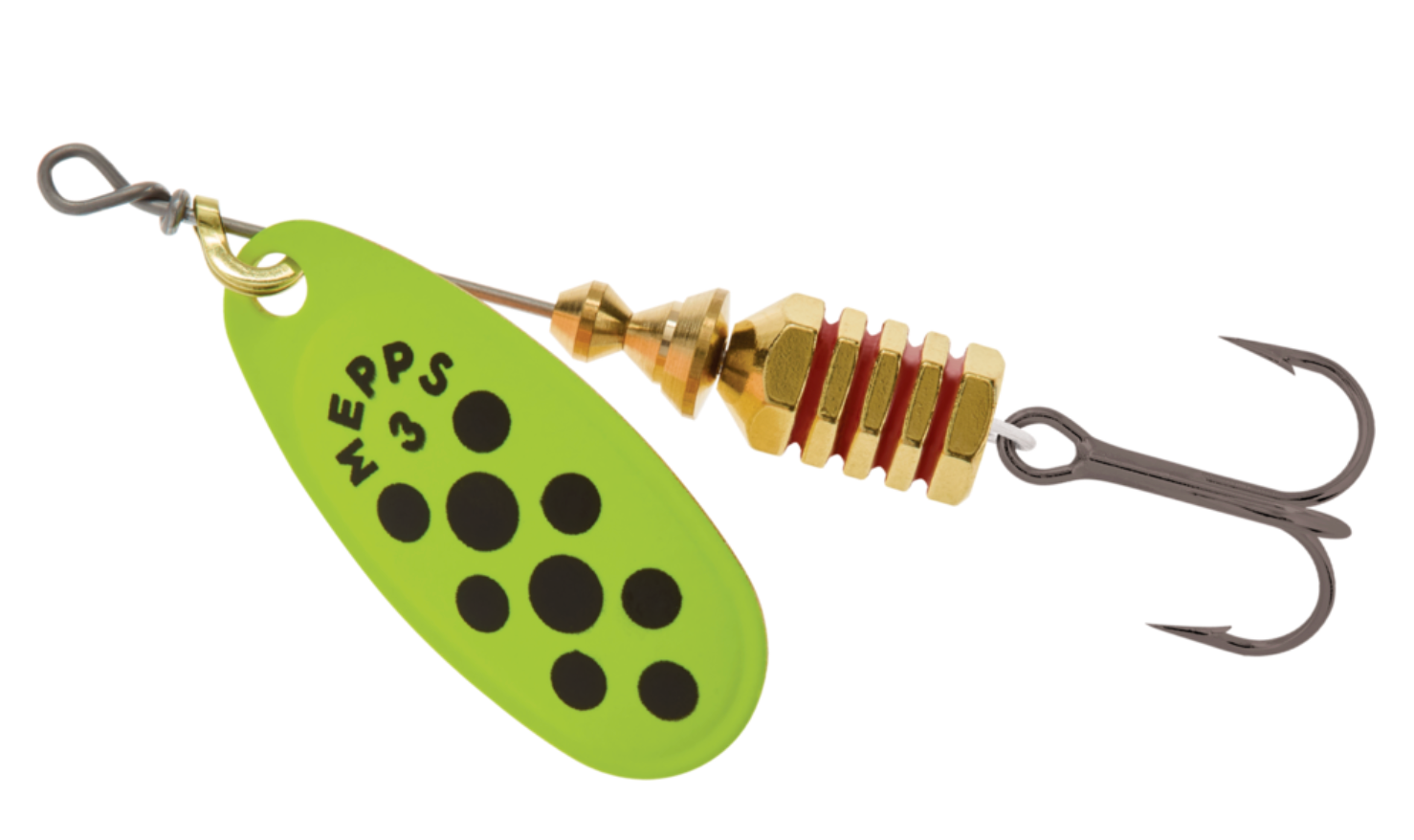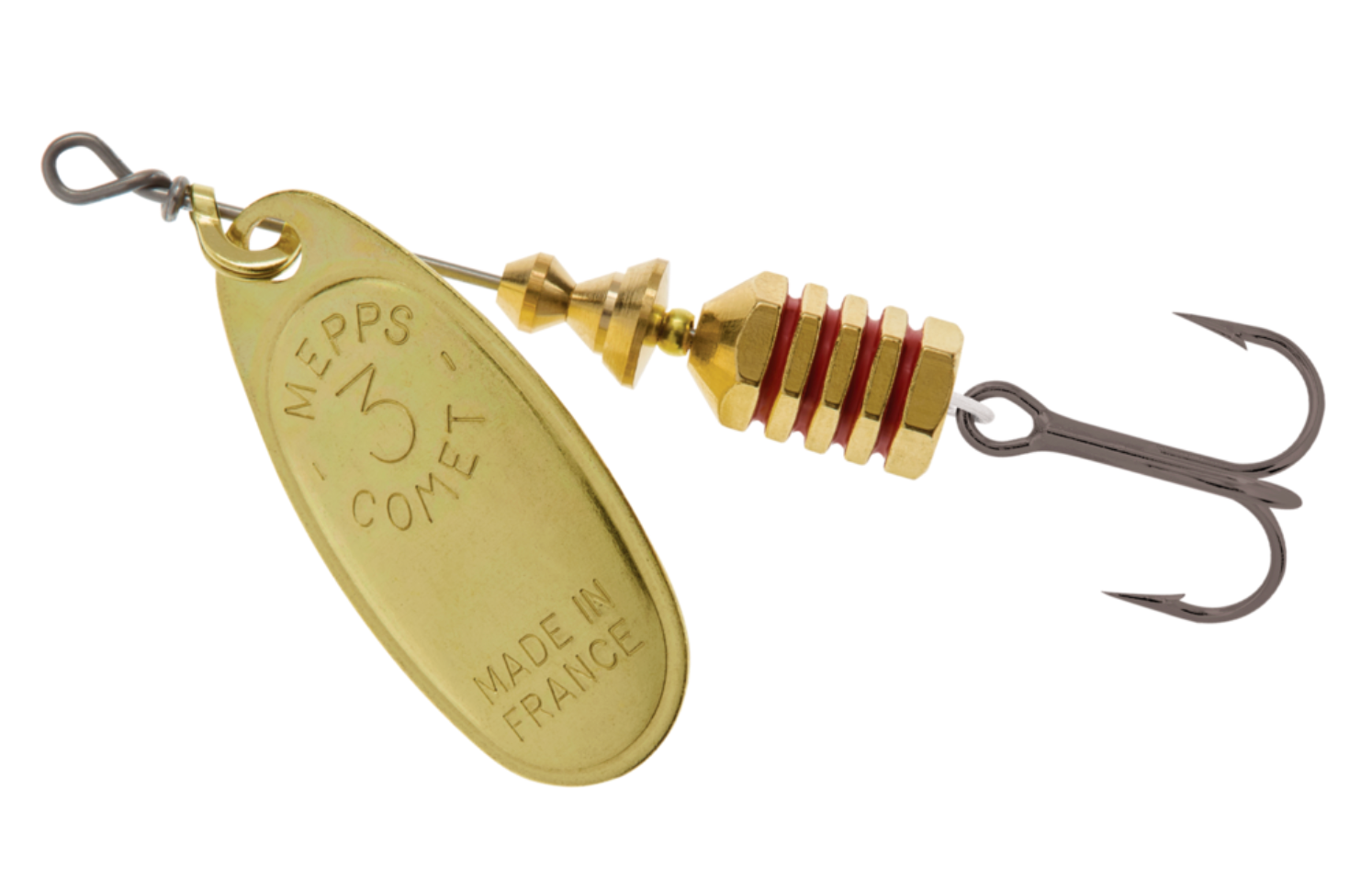 The Comet® spinner is Mepps’ most versatile lure, maybe the most versatile lure anywhere. The main reason is its detachable hook. You can fish the Comet® with standard plain or dressed treble hooks. Or, with the popular Mepps Mino. For walleye, trout and northerns, attach a single hook and add a minnow or nightcrawler. (Where permitted). Keep some Mepps Comets® on hand, and you will soon discover just how versatile they are. The variety of combinations is limited only by the angler’s imagination.