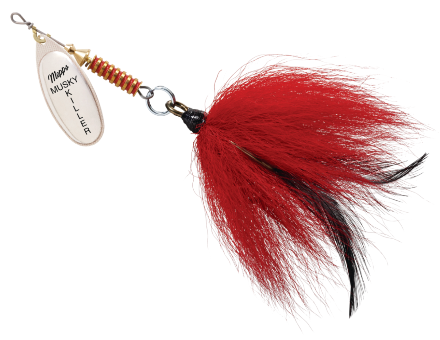 The Mepps Musky Killer® series features expertly balanced blades and BIG profile bucktail hook dressings. The standard Musky Killer® B5M with a #5/0 treble feature the shallow running Aglia® blade, The colour patterns illustrated are all proven producers. Mepps quality throughout from the original #5 blade to the solid machined brass body. Hand tied hook dressings with genuine bucktail, dyed in brilliant fish-attracting colours, a stainless steel shaft and a rugged folded solid brass clevis mean this lure will hold up under the toughest conditions.