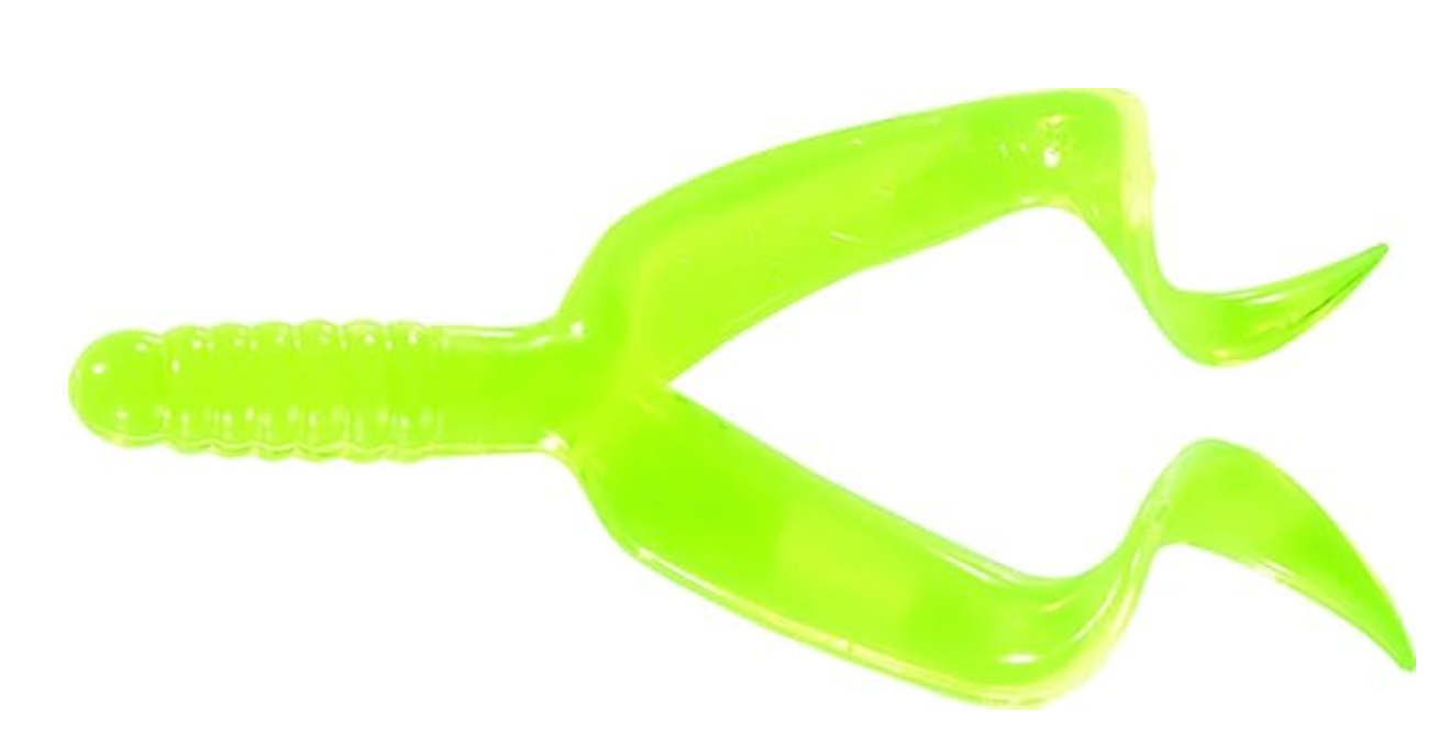 Twice the attraction. Tied to a round jighead, or attached as a trailer to a weedless spoon, spinner or spinner bait, the Double Tail provides double the action.