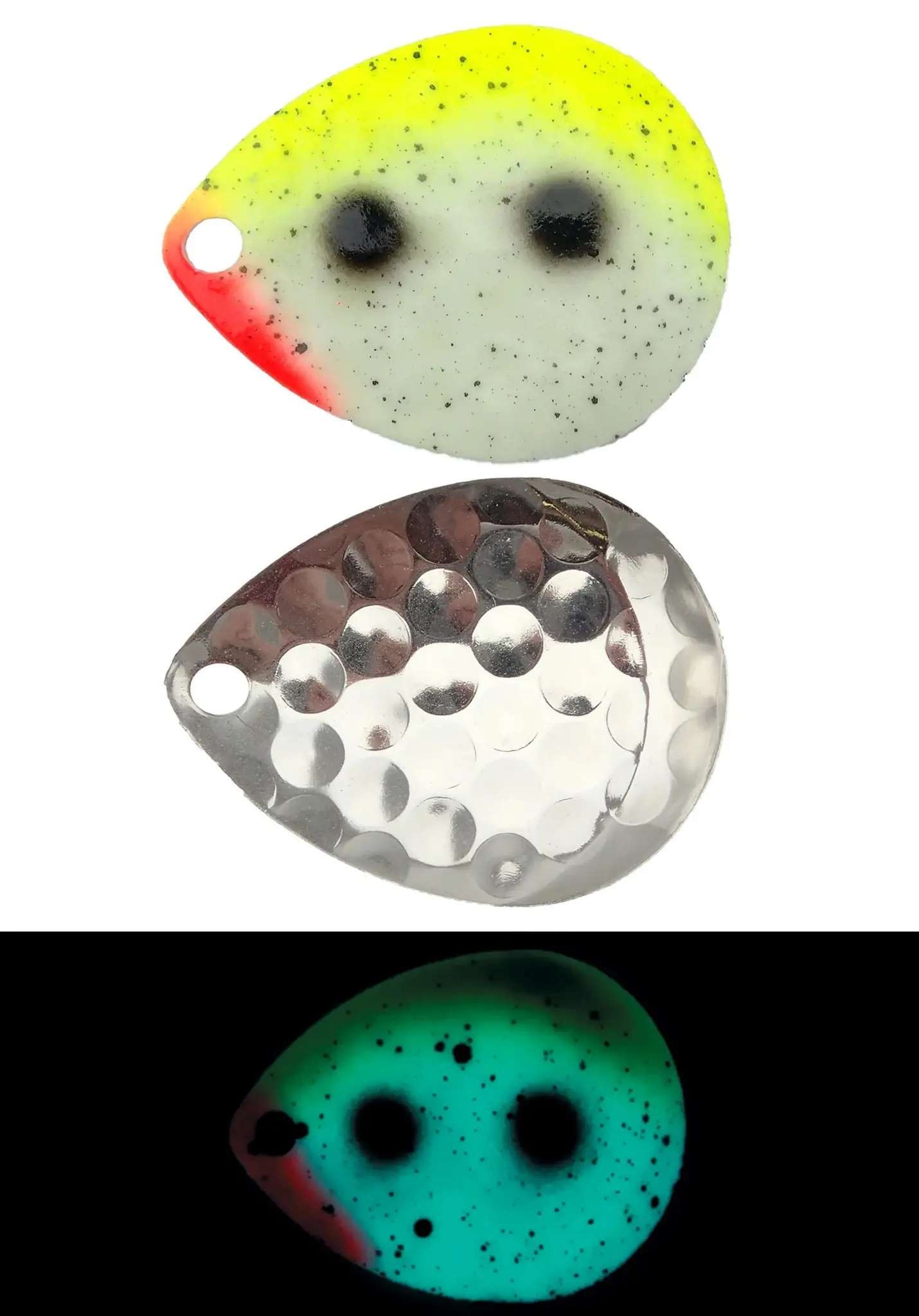 With the Moonshine Lures Spinner Blades, you can add a whole lot of color and flash to your set up! These blades come in an assortment of UV colors that large predators won’t be able to ignore! The pattern pressed into the blades helps to disrupt the water, causing vibrations to enhance the attraction to your lure! The vibrant UV colors make these blades perfect for deeper depths and even night fishing!