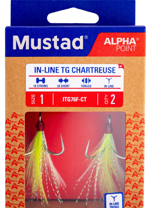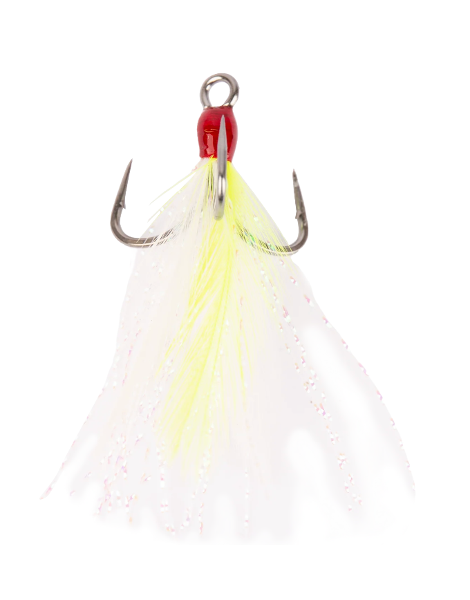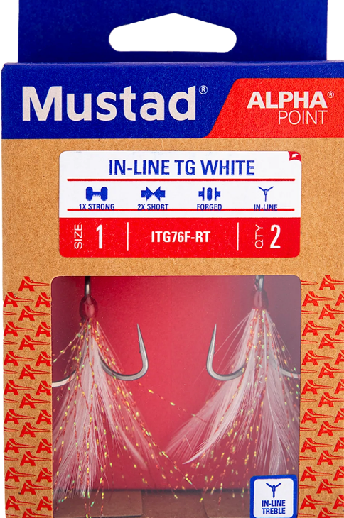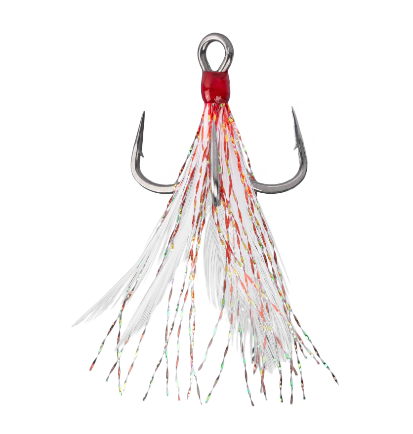 Mustad's well-known Triple Grip Treble Hooks feature the all-new AlphaPoint hook point technology for increased sharpness and preserved durability. For boosting attraction, these feathered alternatives are the perfect replacement hook to entice a bite. The slimmer, sharper point penetrates quickly and the unique Triple Grip shape locks the fish on. Coated with Mustad's Titan Steel finish, offering 500+ hours of saltwater resistance and a sleek, steel sheen.