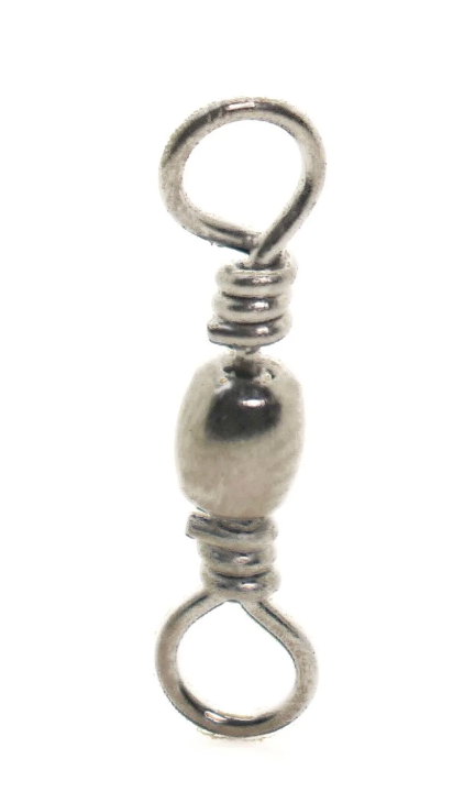 Designed to eliminate line twist and make a dependable and strong link between the main line and a leader. The Mustad Barrel Swivel is made from high quality materials and will not let you down. When choosing a swivel always go small. Pick a swivel, which will match the breaking strength of your line. This will give the best performance and presentation. When tying your fishing line to the swivel eye make sure to center the knot, as this will ensure the best rotation. Made from brass, for either saltwater or freshwater use. Black Nickel finish.
