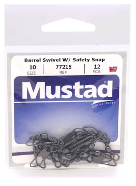 Mustad Black Barrel Swivel w/Safety Snap, Size 12
