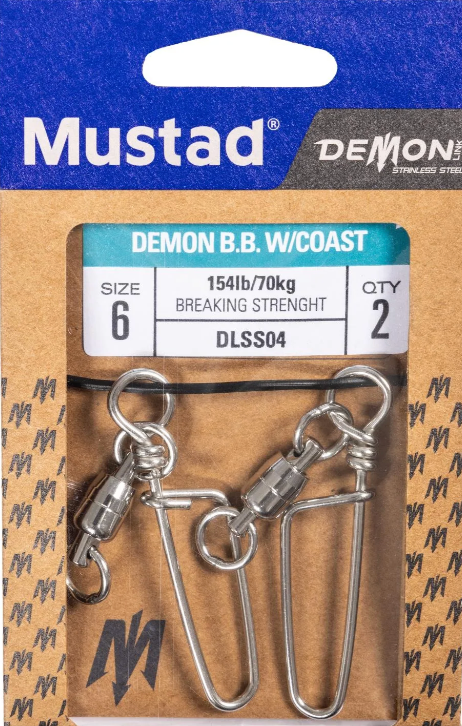 A staple piece of terminal tackle in any salty angler's arsenal, the Ball Bearing Swivel with Coastlock snap is a quick yet trustworthy rigging necessity. Saltwater fishing professionals demand the best tackle, which is where Mustad excels. Completely refeshed, the Mustad DemonLink Stainless Steel range delivers quality construction with incredible saltwater corrosion resistance. Delivered in Mustad's one-of-kind sustainable packaging with reduced single plastics and reusable label sticker.