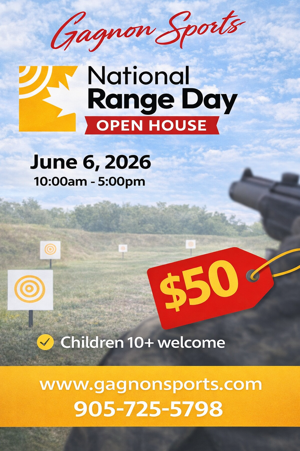 Join us for our Annual National Range Day Open House at Gagnon Sports on Saturday, June 6, 2026, from 10:00 AM to 5:00 PM!