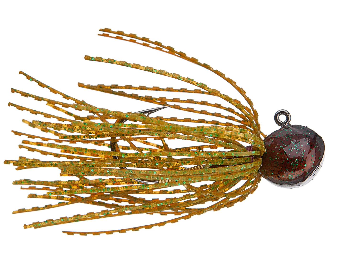 Complementing its unique head style is a razor sharp 90-degree Owner Jig hook. Unlike many of its predecessors, this jig is not just equipped with a stout Owner hook. It is equipped with a stout 2/0 Owner hook. The benefit of this smaller hook is that it allows you to fish more compact soft plastic trailers without have a gaping hook hanging out to get snagged.