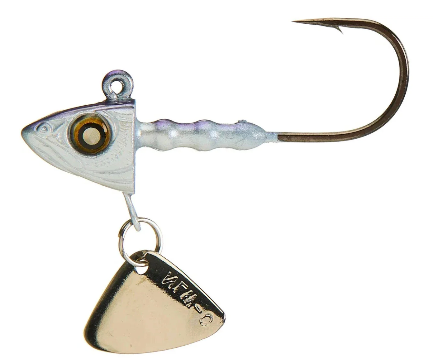 Scaled down to accommodate bait finesse and forward-facing sonar applications, the Nishine Lure Works Smelthead Finesse Jighead features a lightweight triangular head that maintains a specific depth during the retrieve. Built with a wedge-shaped underspin blade to increase flash and vibration, the unique blade and long, slim nose encourage a seductive rolling action that's deadly for targeting suspended fish with hover-strolling tactics.
