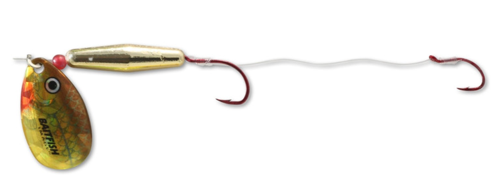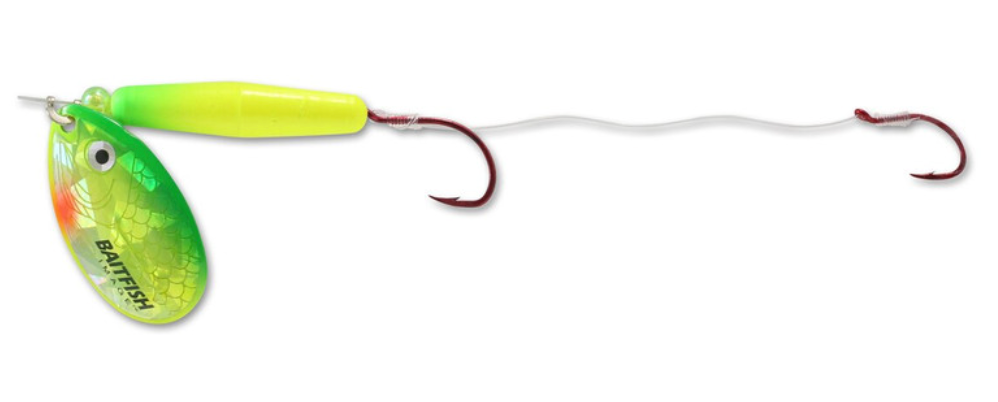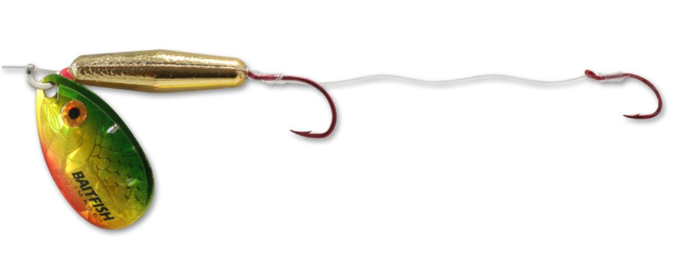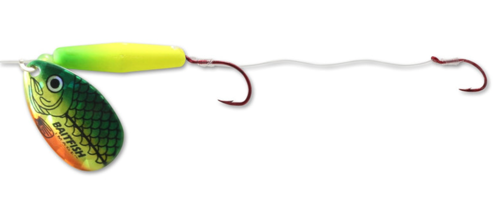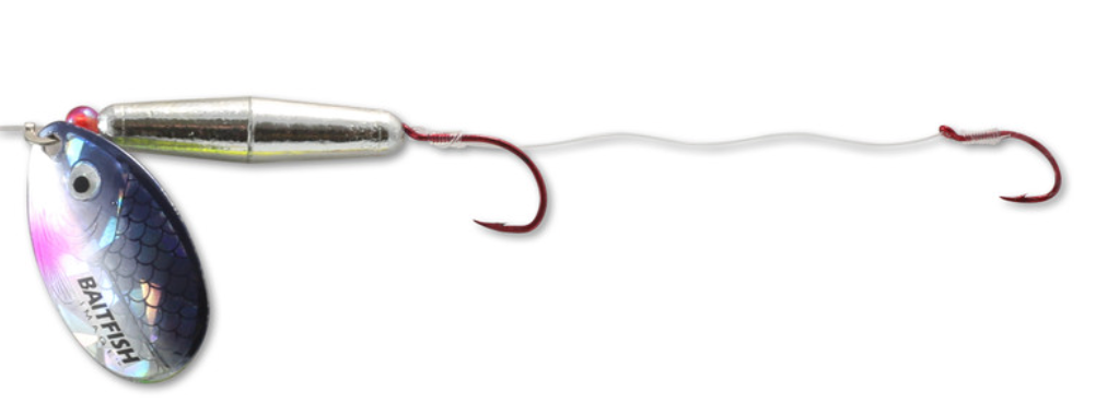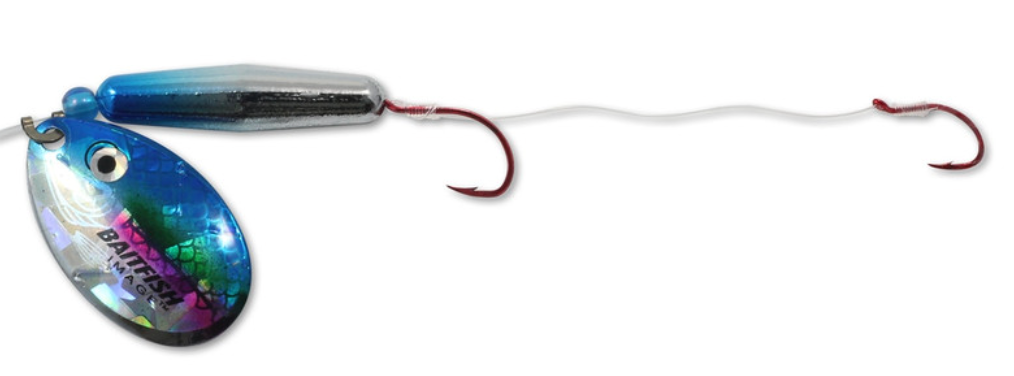 Deadly on walleyes, bass and other gamefish. Choose this rig to target off-bottom, suspended fish. The buoyant cylinder float lifts the rig over weeds, moss, logs and rocks. Troll at medium speeds to maximize the Indiana blade’s flash and vibration. Select Baitfish-Image® patterns to mimic colors of the lake’s primary forage.