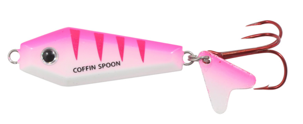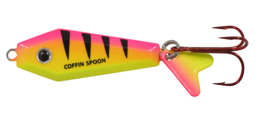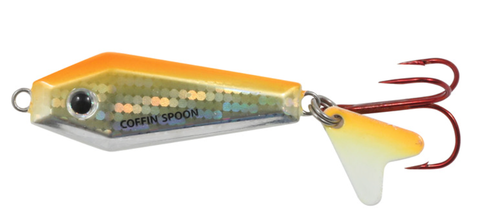 With the internal brass rattle and Kicker-Tail fin the Buck-Shot® Coffin Spoon is the loudest spoon Northland Tackle offers. The angled body uniquely reflects light, while the flat-sided profile produces an enticing tumbling action on the fall. With these two features, the Buck-Shot® Coffin Spoon will attract fish and make your presentation irresistible.
