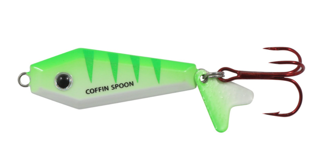 With the internal brass rattle and Kicker-Tail fin the Buck-Shot® Coffin Spoon is the loudest spoon Northland Tackle offers. The angled body uniquely reflects light, while the flat-sided profile produces an enticing tumbling action on the fall. With these two features, the Buck-Shot® Coffin Spoon will attract fish and make your presentation irresistible.