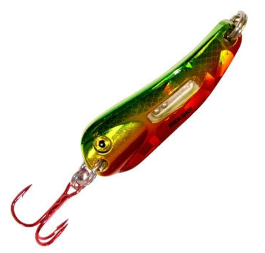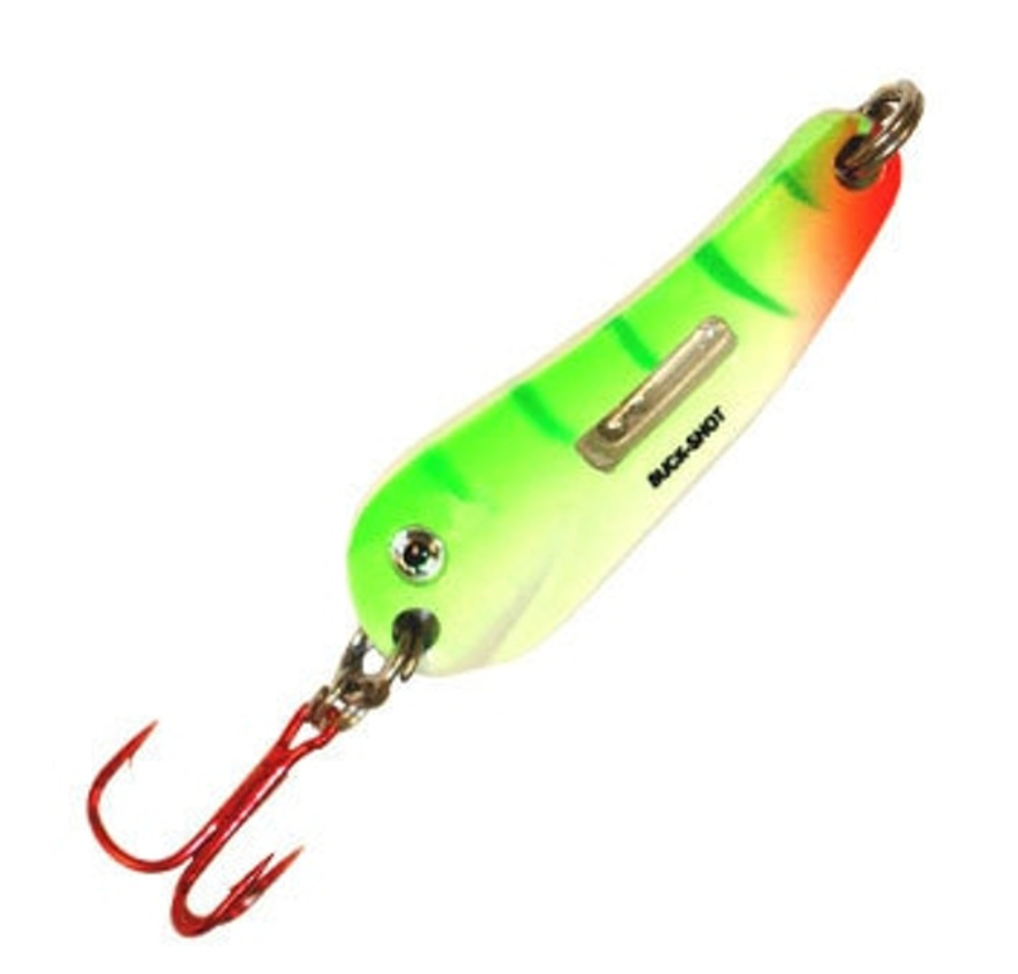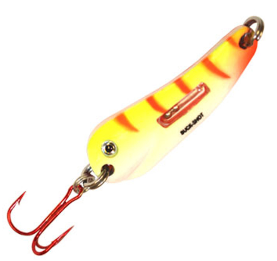 A standout for walleyes, pike, trout, perch and crappies, the Buck-Shot® Flutter Spoon’s S-curve design produces an erratic action, high-pitched sound waves and accentuated flutter when jigging and casting. Also effective quivered in place when wary predators move in close. Tip with a variety of live and artificial baits.