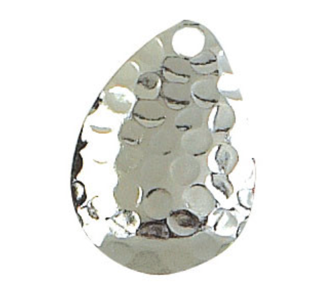 Deadly for walleyes and jumbo perch. Produces slower rotation plus distinctive flash and maximum vibration. Ideal at slower trolling speeds. Premium metallic finish reflects sunlight, making it a great choice in bright conditions such as sunny skies with a calm surface and clear water. Choose hammered “hex” patterns in extremely bright conditions.
