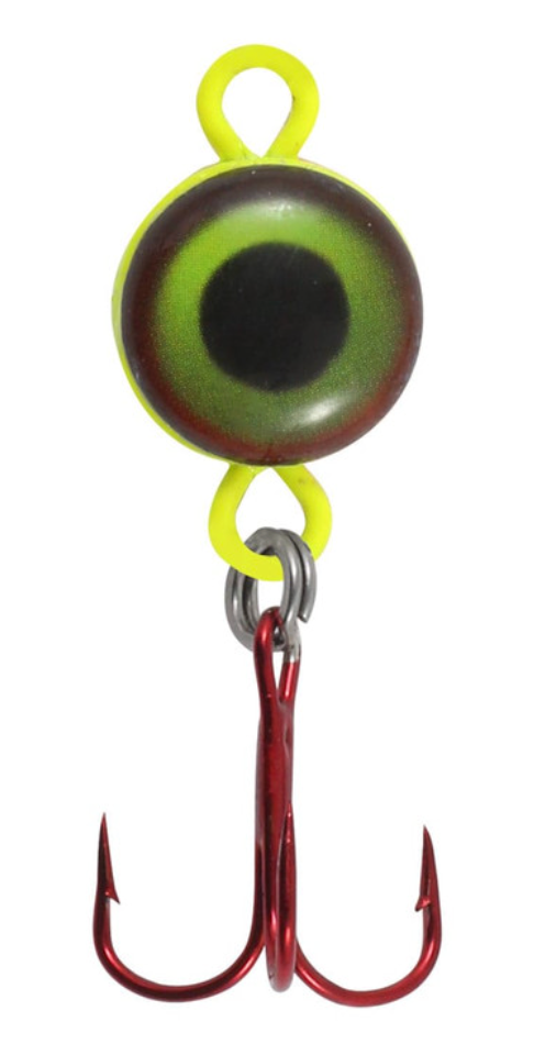 The Eye-Ball Spoon™ perfectly mimics the real thing, with bling. The backside of the spoon offers an array of colorful glow patterns for all scenarios, providing both attraction and realistic seduction. The Eye-Ball Spoon’s™ lead material and compact design means you’re getting to fish fast, and able to fish various sizes in a range of depths, for a wide assortment of species. This makes the Eye-Ball Spoon™ an incredibly versatile bait that’s perfect for panfish and hungry predators alike. The NEW Eye-Ball Spoons™ are available in 3 sizes (1/16 oz., 1/8 oz., and 1/4 oz.) and 10 different fish-catching colors. Each pack contains one (1) Eye-Ball Spoon™ per card.