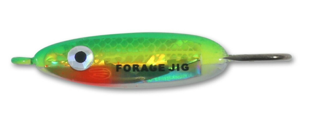 The renowned Forage Minnow® Jig flashes and flutters up strikes from walleyes, trout, jumbo panfish and other predators. It produces an incredibly tempting minnow action with a variety of jig strokes when tipped with a minnow head or other live bait, but is equally effective in deadsticking applications paired with a lightly hooked live minnow.