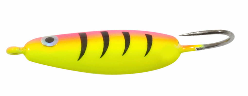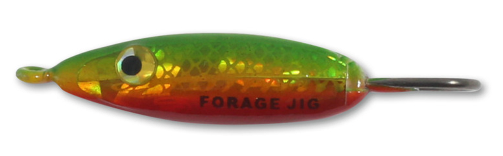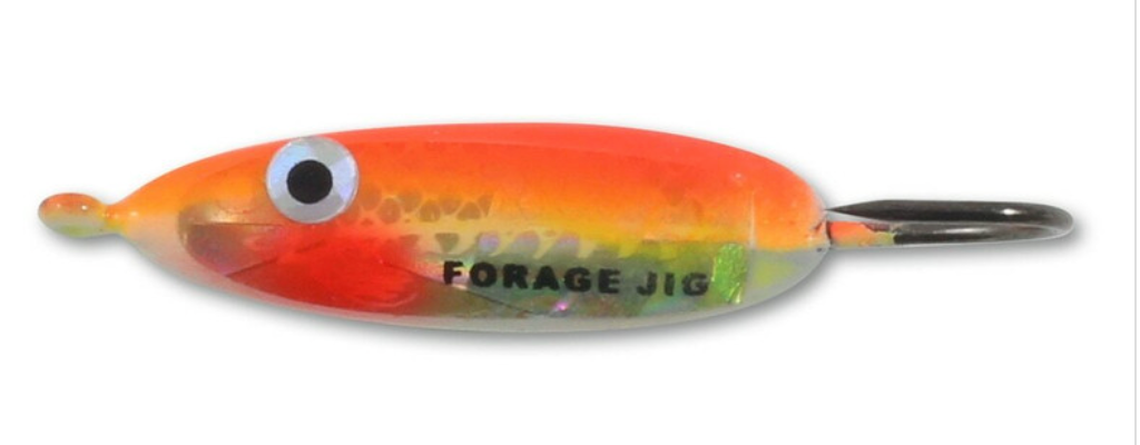The renowned Forage Minnow® Jig flashes and flutters up strikes from walleyes, trout, jumbo panfish and other predators. It produces an incredibly tempting minnow action with a variety of jig strokes when tipped with a minnow head or other live bait, but is equally effective in deadsticking applications paired with a lightly hooked live minnow.