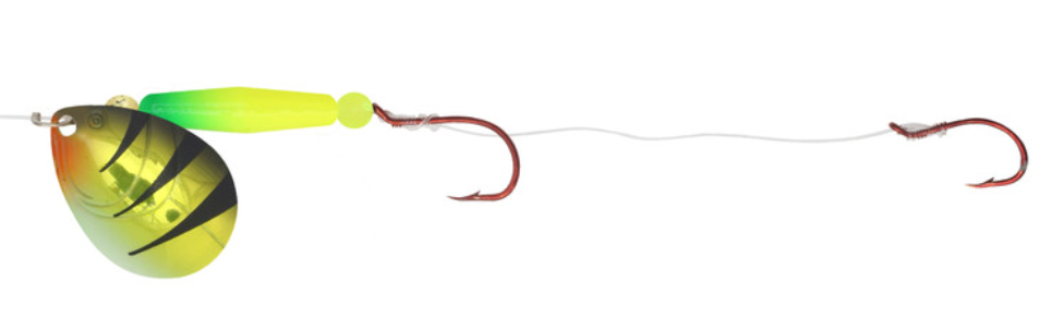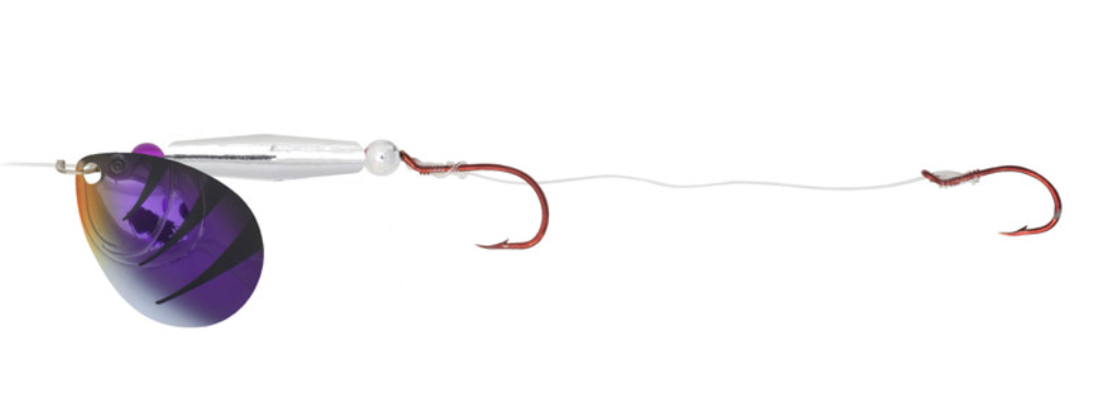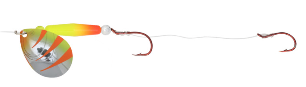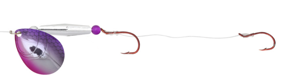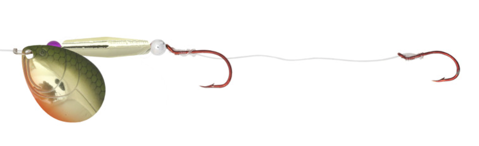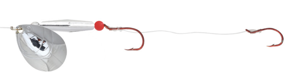 There is no better way to cover water than a spinner rig. The Gold Rush spinners give anglers a premium option to do this. Stamped brass blades with embossed fish gill designs produce greater vibration and flash calling fish in from a wide radius. It features a buoyant rig float that keeps baits off the bottom and in the strike zone. Tied on a 60" leader with two hook harness to pull any type of live bait or soft plastics.