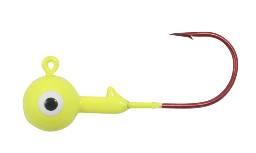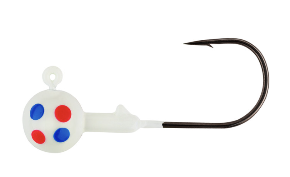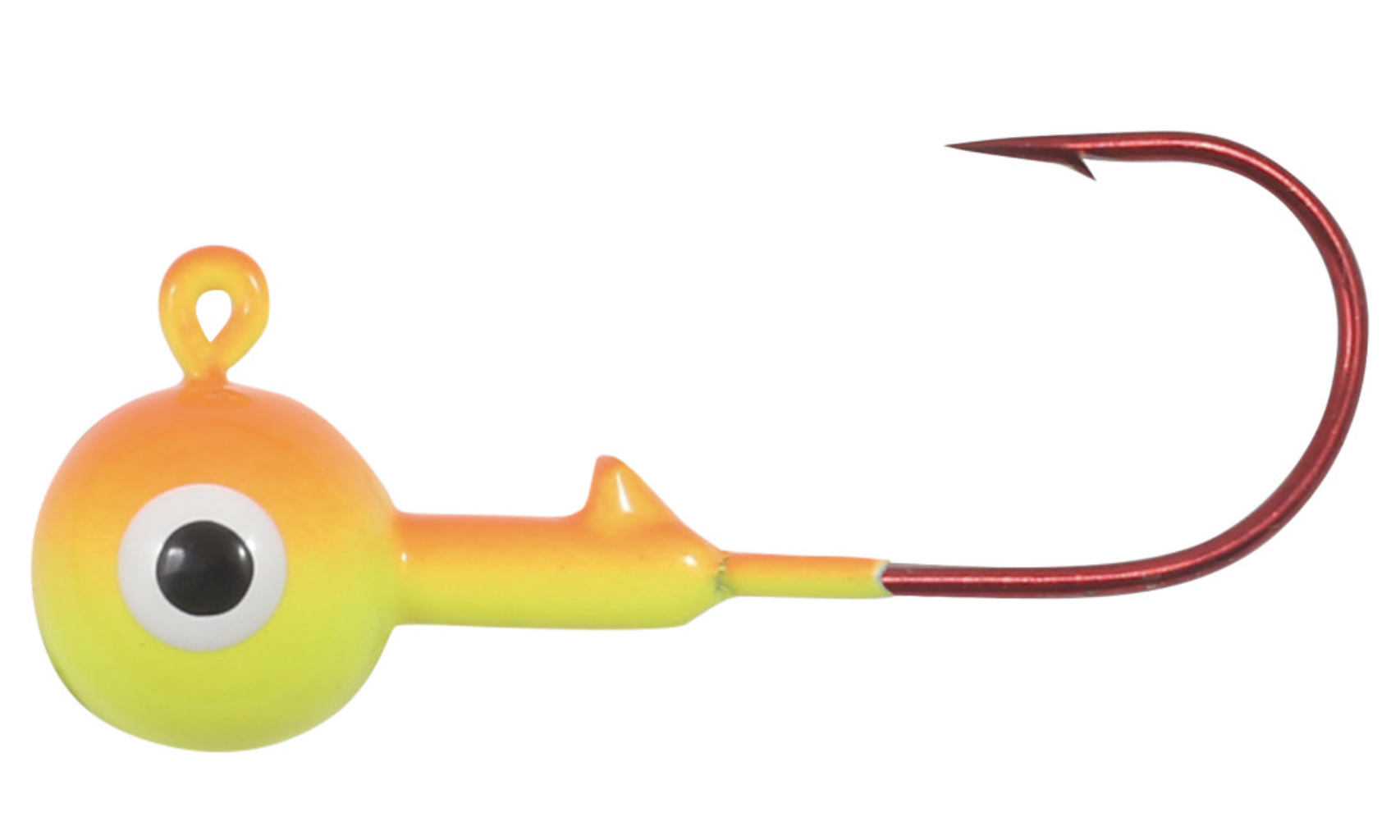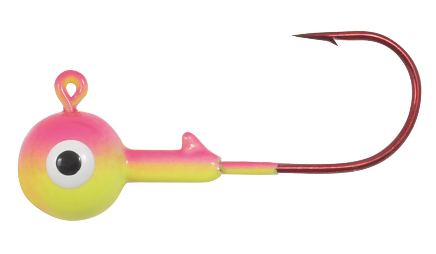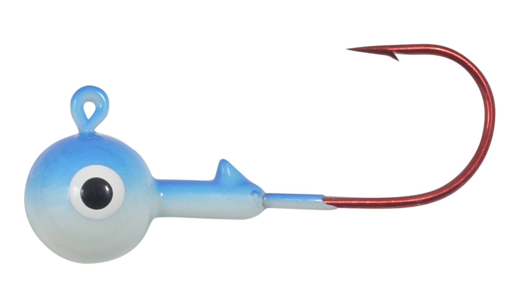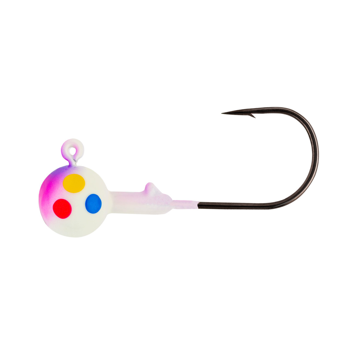The classic round head jig. Featuring super-sharp hooks, molded bait keeper and appropriately sized eyelets. The Gum-Ball® Jig comes in 22 colours and 8 sizes, so you can have a Gum-Ball®Jig for every situation. Its lead jig collar provides balance to the jig and holds onto soft plastics and live bait. They feature blood red and black nickel hooks that are custom designed so the tie eye fits flush with the head. Sizes 3/16 - 1/2 use a +1 size larger hook making them perfect for larger predator fish like walleyes.
