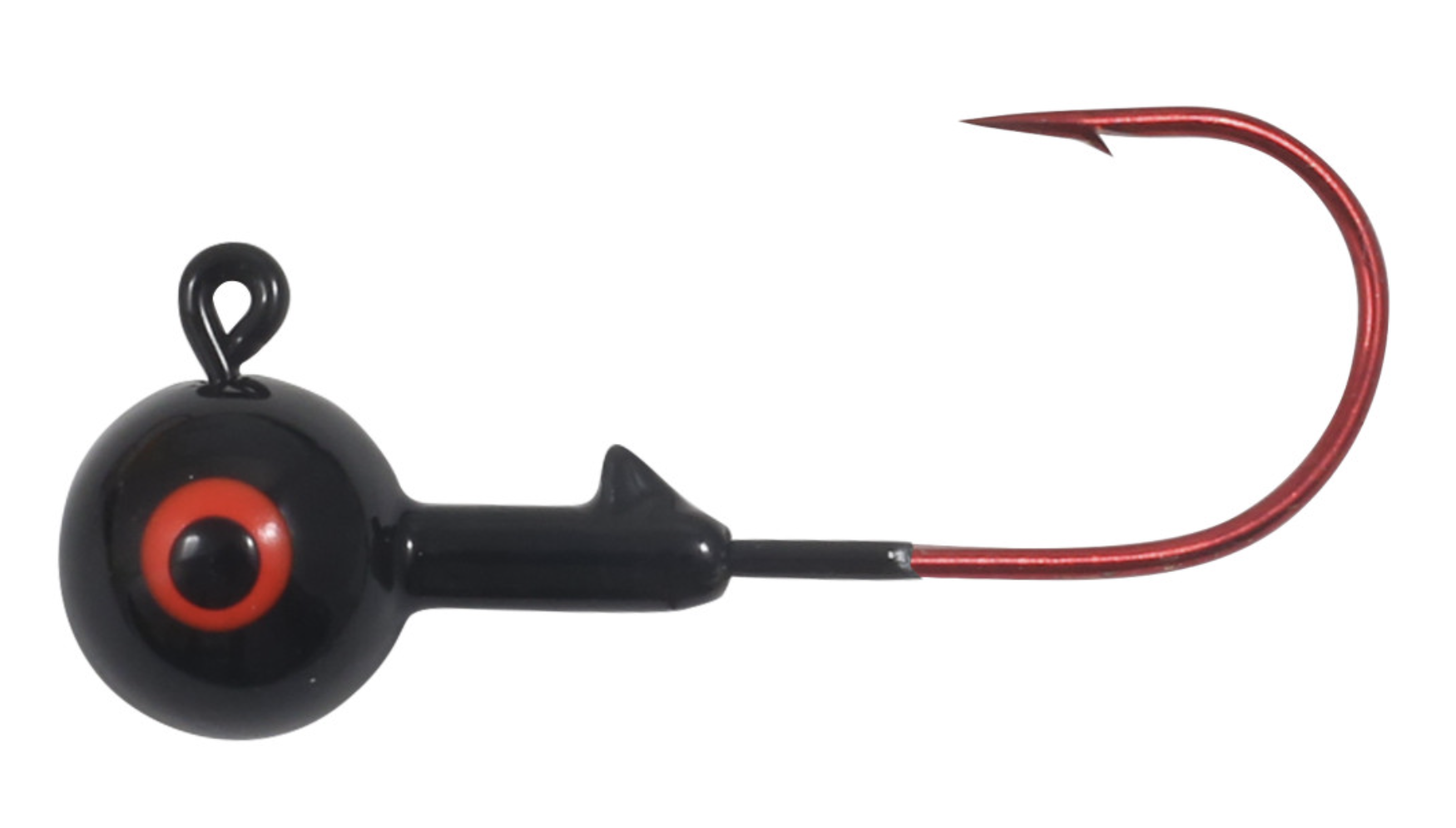 • Premium quality "Ball Head" molded around a blood red or black nickel hook