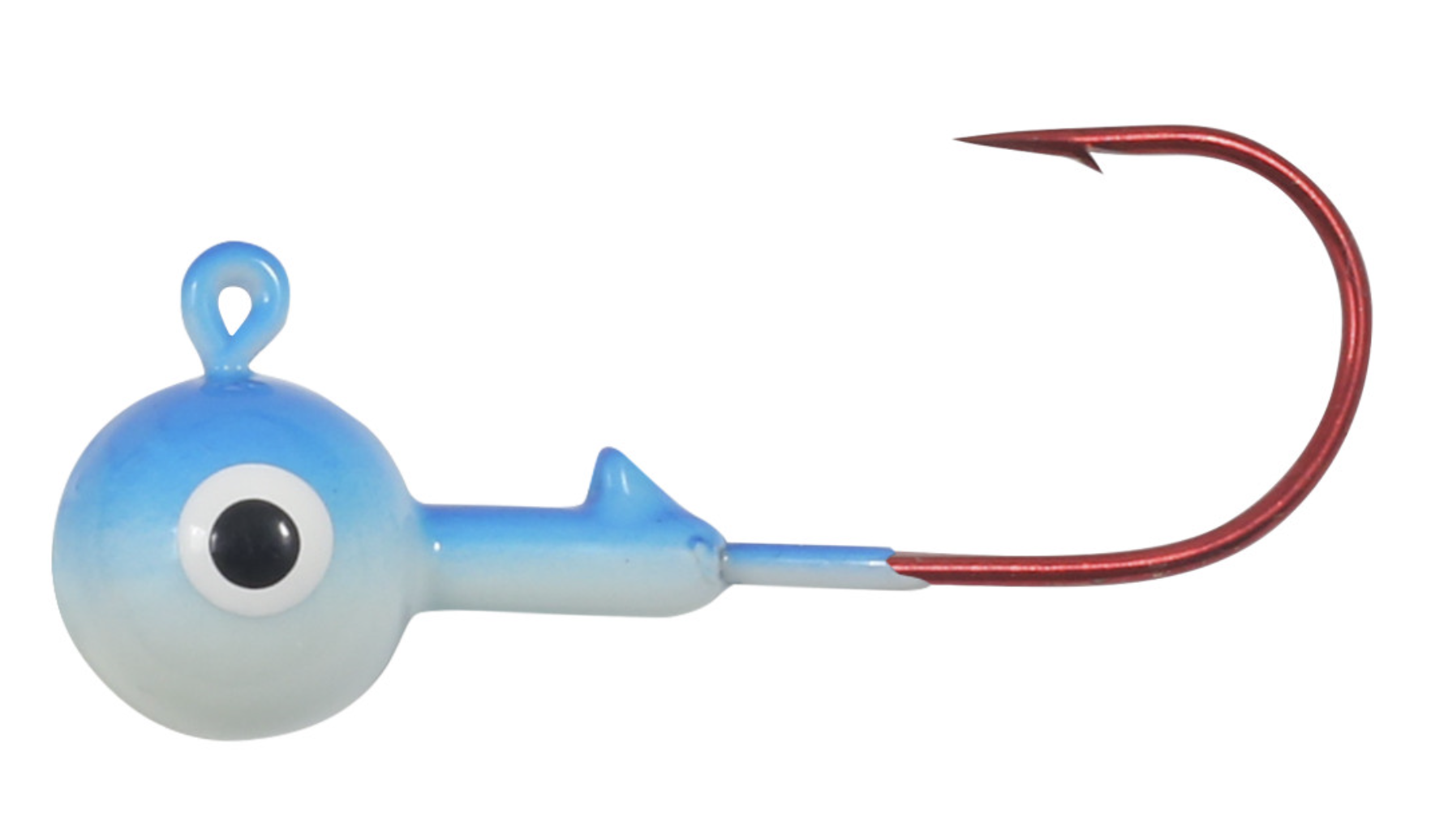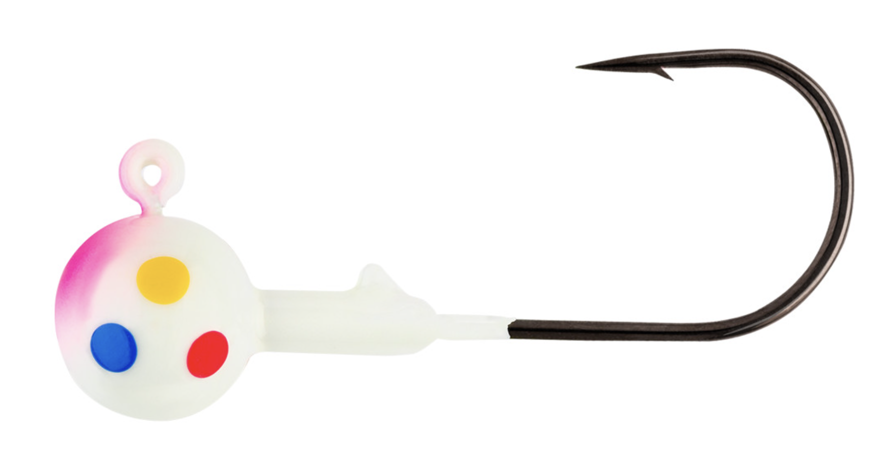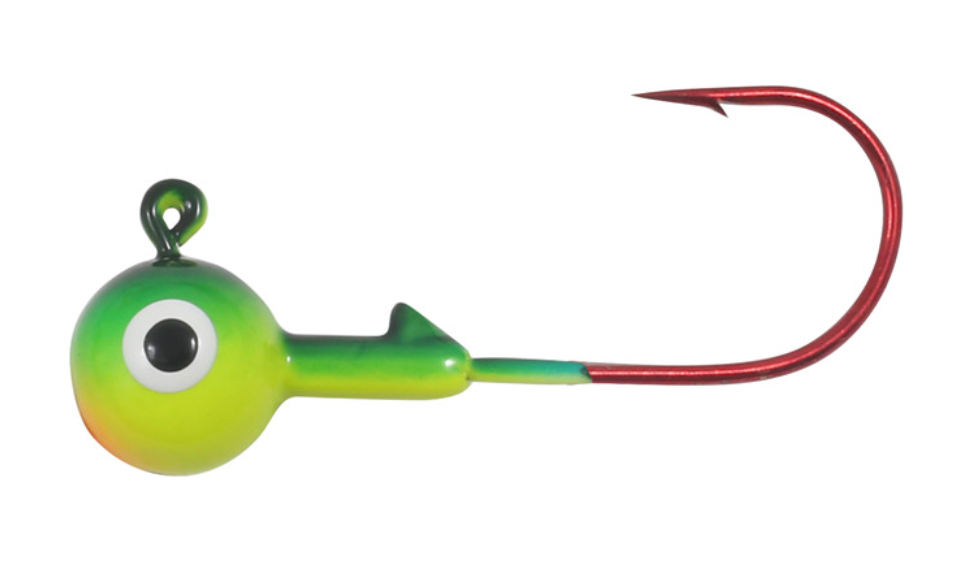 The classic round head jig. Featuring super-sharp hooks, molded bait keeper and appropriately sized eyelets. The Gum-Ball® Jig comes in 22 colours and 8 sizes, so you can have a Gum-Ball®Jig for every situation. Its lead jig collar provides balance to the jig and holds onto soft plastics and live bait. They feature blood red and black nickel hooks that are custom designed so the tie eye fits flush with the head. Sizes 3/16 - 1/2 use a +1 size larger hook making them perfect for larger predator fish like walleyes.