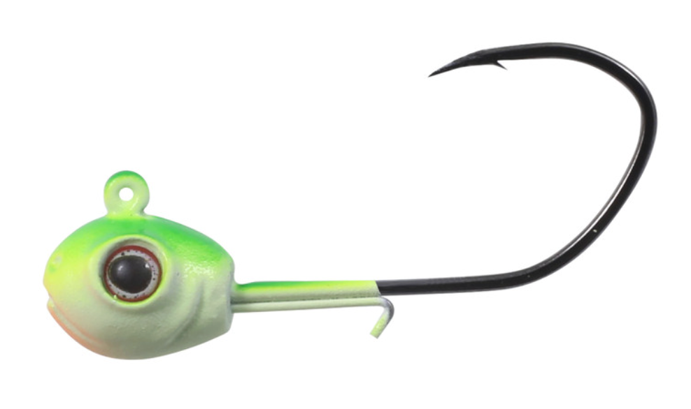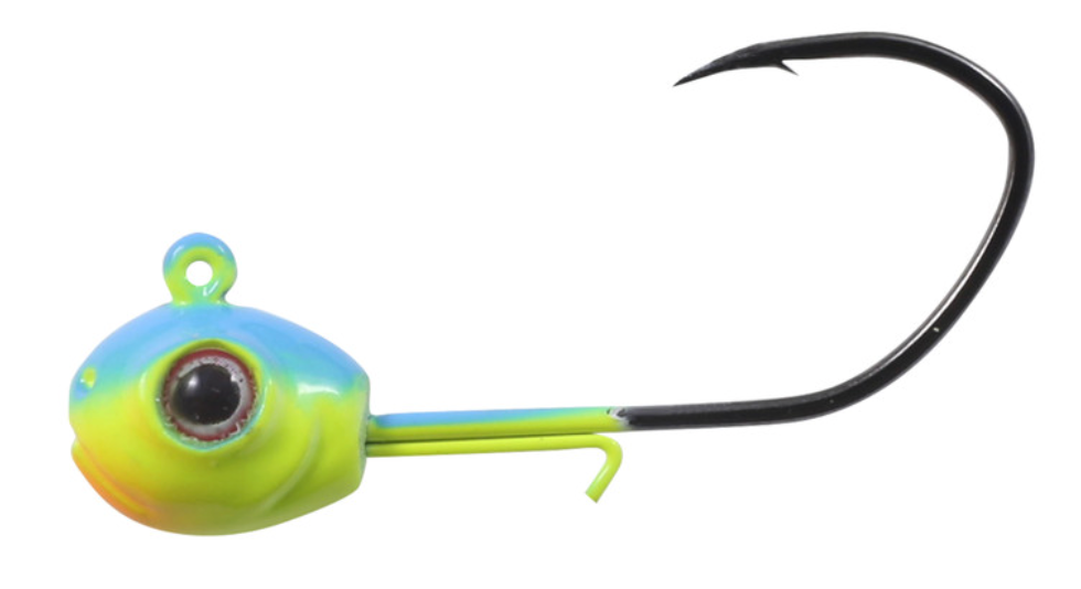 Northlands Elite Series MVP Jig truly lives up to its name, whether rigged with a variety of live bait or plastics this jig does it all. Realistic head with molded gills, mouth and 3D eyes creates a life like appearance. It features a Gamakatsu Big River hook that's sharpness, strength and wide gap wont let anglers down. It sports a Barbwire keeper to lock in plastics.