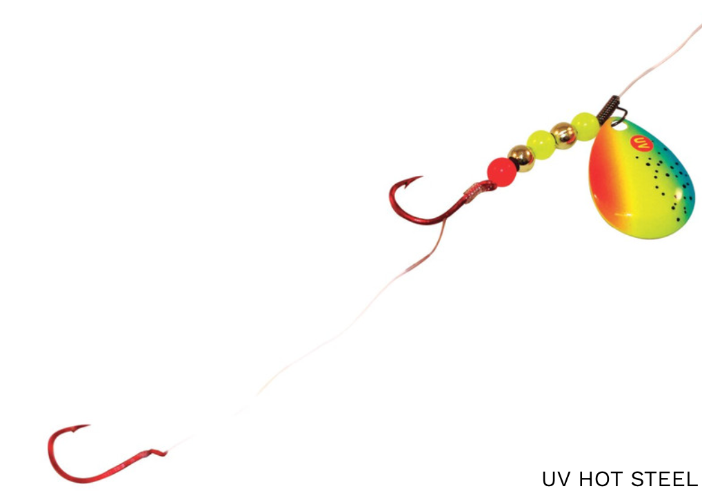Proven deadly for trolling up walleyes. Rig with a live nightcrawler for traditional trolling or “snake-rig” a soft-plastic in a slightly curved manner so the bait zigzags through the water at faster trolling speeds. Optically brightened UV blade enhances visibility, even in dirty water and low-light conditions. Use Speed Clevis for fast blade changes to quickly dial in the most productive colour patterns.