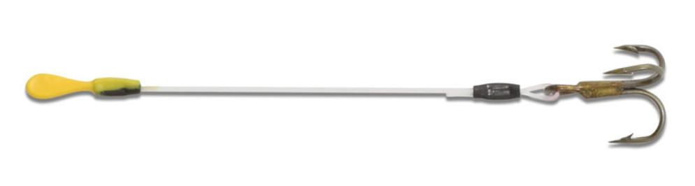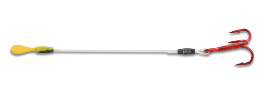Boosts hooking percentages with light-biting walleyes, saugers and other gamefish by 30 to 50 percent or more. Rubber-coated “loop-end” easily slips over any hook. Hook one treble tine into the top of the bait. If you still miss fish, let the stinger swing freely. Best for jigging on clean bottoms. Not designed for dragging in moss, weeds, or other snaggy bottom areas.
