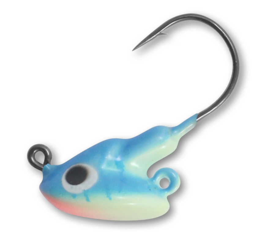 A killer for walleyes, saugers, perch, bass and pike. Tip with a minnow, leech or half crawler. Attach stinger hook on top of bait to minimize fouling. Ideal for shallow-water casting and dragging through sand grass, rocks and rubble. Also deadly around woody cover. Allow jig head to contact bottom to raise bait into natural position, imitating a feeding minnow.