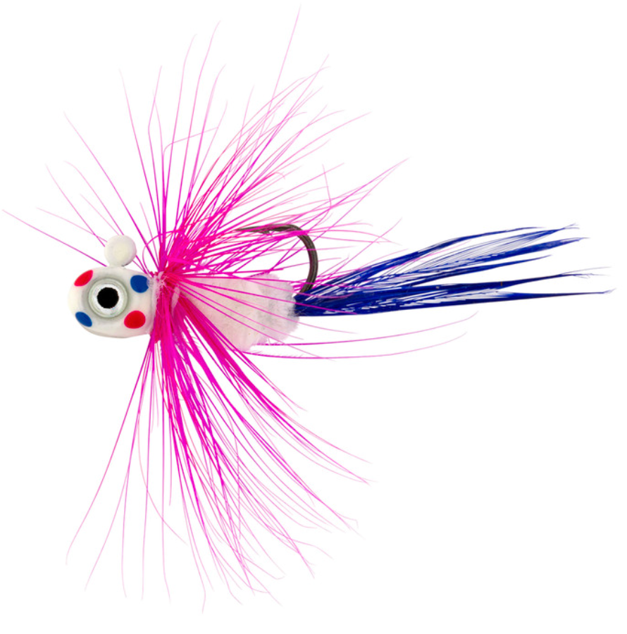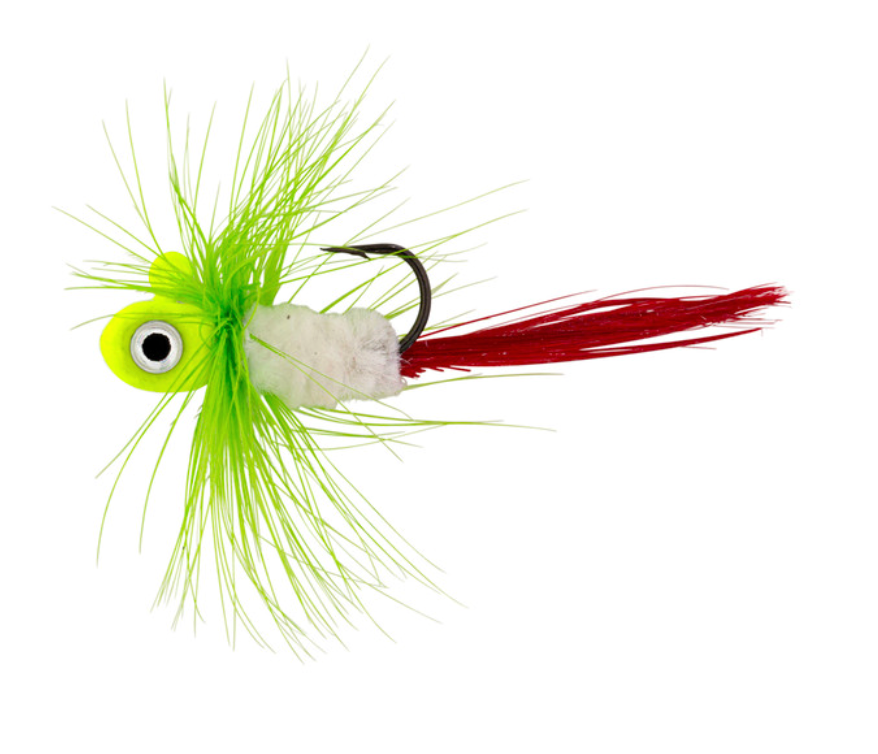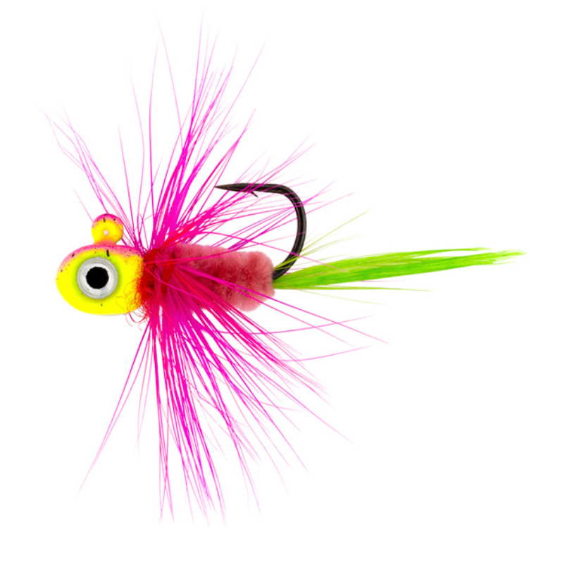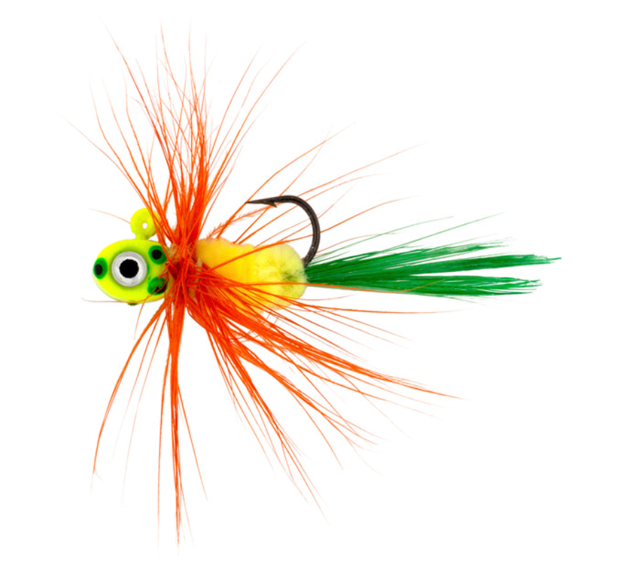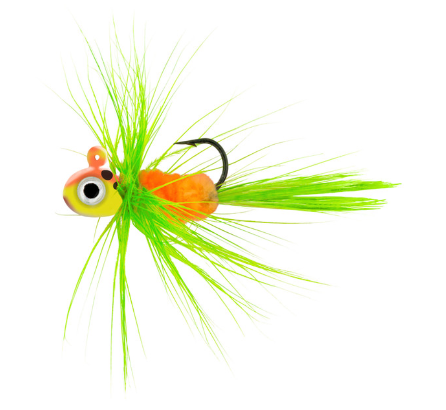 The Tungsten Flat-Fry Fly is designed as a small panfish jig that hangs at a 90 degree angle to imitate small fish, a favorite forage of Perch, Bluegill and Crappies. Real feather hackle adds to the illusion of a swimming fry. This is especially important in pressured panfish waters offering something that looks familiar and natural.