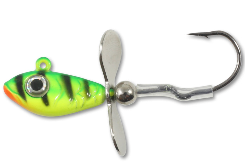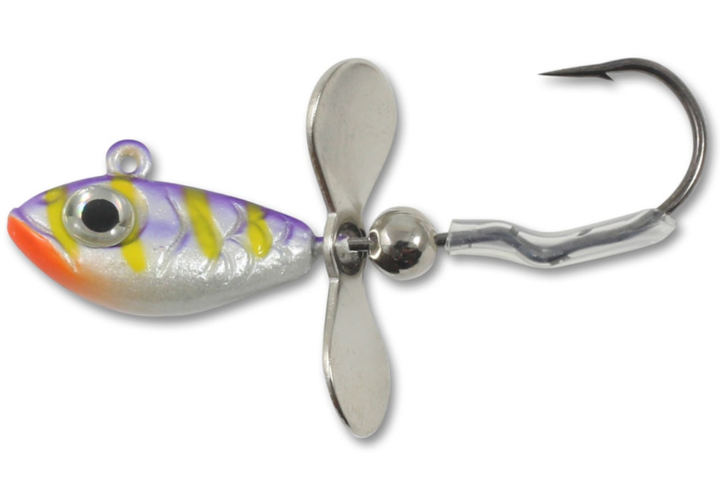Great for walleyes, bass, pike, trout and jumbo panfish. Offers the same fish-attracting metallic propeller as the original Whistler® Jig, plus a sleek head design and optically brightened, high-vis UV colors that excel in low-light conditions and stained or muddy water. Cast or jig. Tip with live bait or soft plastics like the IMPULSE® Smelt Minnow.