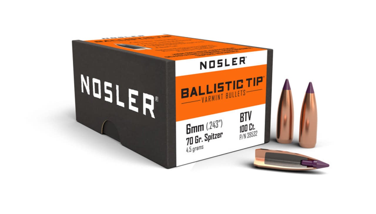 Nosler 39532 Ballistic Tip 6mm .243 70 gr Spitzer Point 100 Per Box