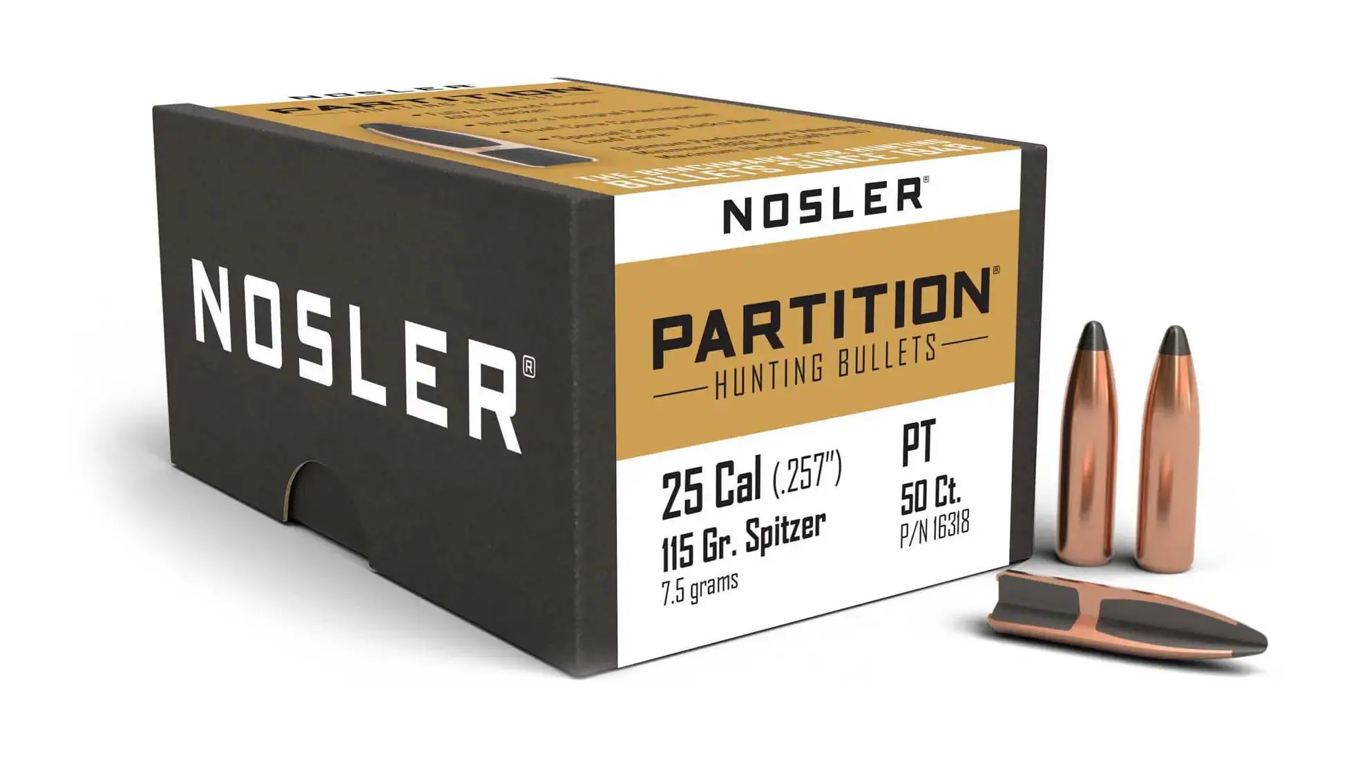 Nosler Partition 25 Cal .257 115 gr Spitzer 50 Per Box