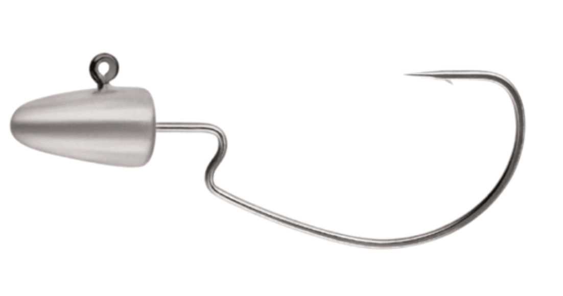 Designed for vertical fishing, the 90° eye helps keep baits horizontal for ideal fishing presentations. Designed with a “Z” shoulder bend for weedless applications. Features include Super Needle Point and Black Chrome finish.