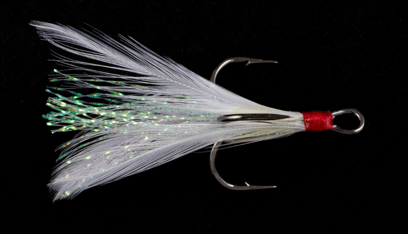 Featuring Owner's ST-36 treble hook, but with feathers and reflective mylar flash hand-tied around the shank to stimulate more strikes. When pulled behind a crankbait or spoon, the feathers undulate like the tail of a minnow, but stop the lure and the feathers spread, triggering an "attack" response. Hook features Super Needle Points and a Black Chrome or Red finish.