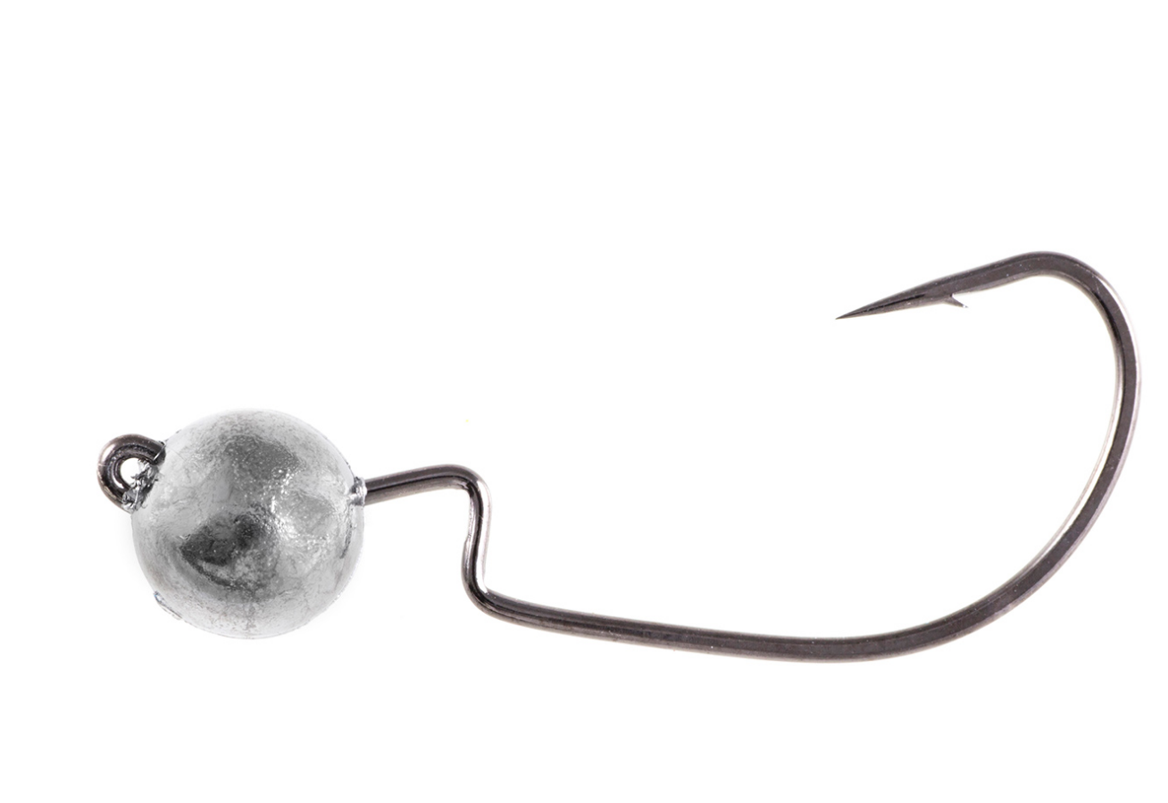 This is truly a finesse ball head jig. These Owner heads are the perfect companion for small worms and other soft plastic baits and the Extra Wide Gap hook design will help guarantee solid hookups in spite of the small hook size. The line from the hook eye to the shank is above the centerline of the round ball, which makes an unstable design and causes the jig head to tip and wobble ensuring lots of worm action when you crawl your bait over the bottom. The hook points feature the legendary Owner sharpness which gives you easy penetration even with light lines and rods. The combination of the round head and the 45' up eye makes these heads almost snag proof.